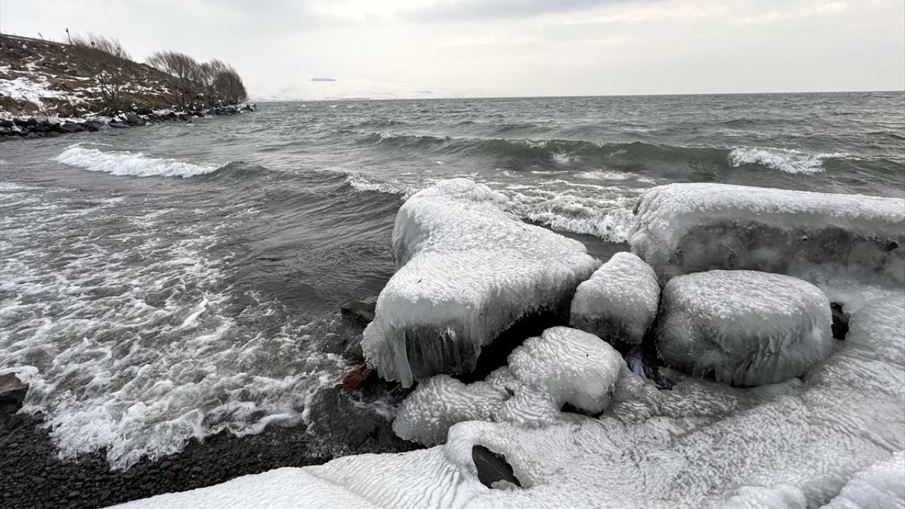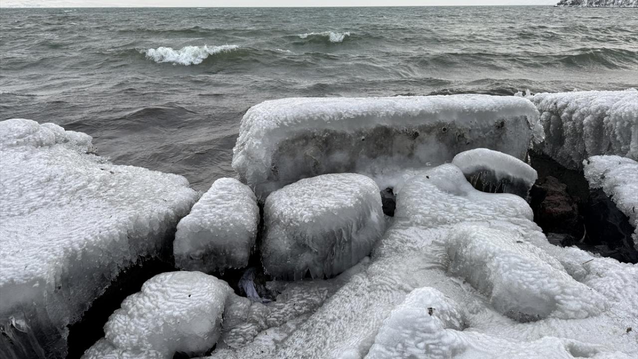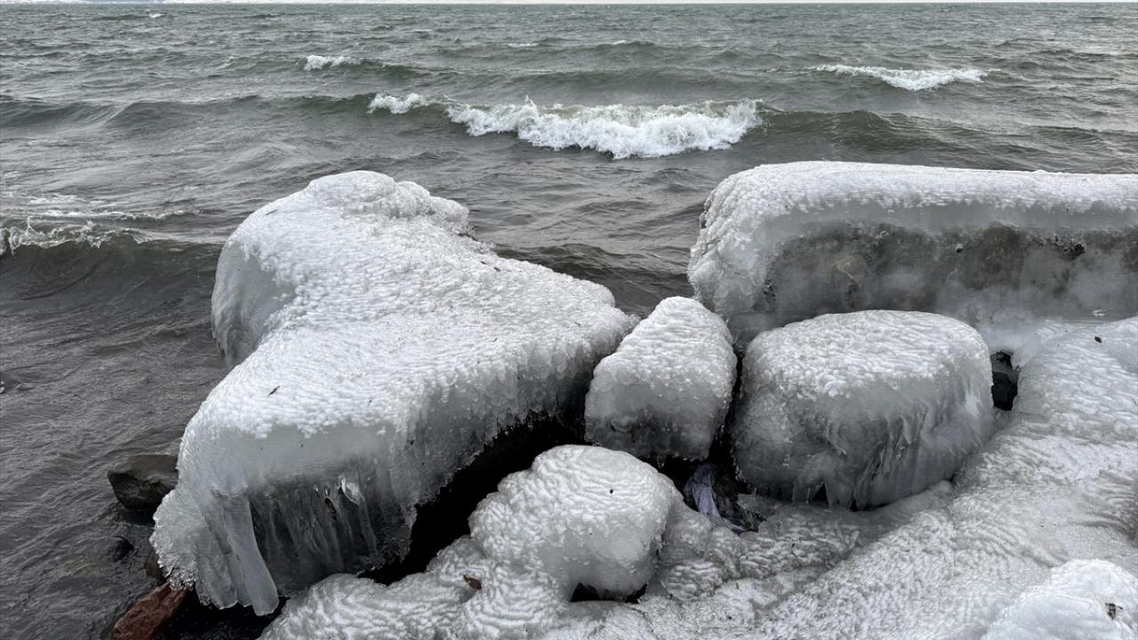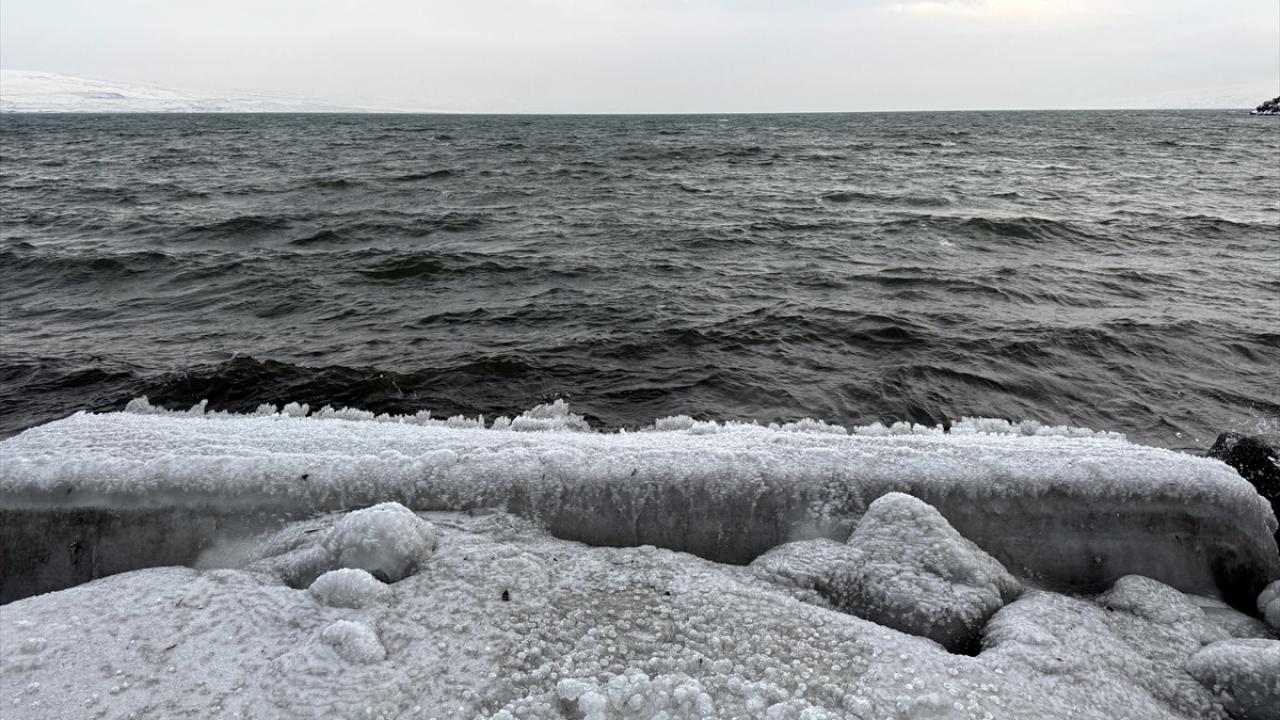 Soğuk nedeniyle Ardahan ve Kars arasında bulunan Çıldır Gölü`nün yüzeyinin bazı kesimleri buz tuttu, donmayan bölgelerde ise rüzgarın etkisiyle dalgalar oluştu.