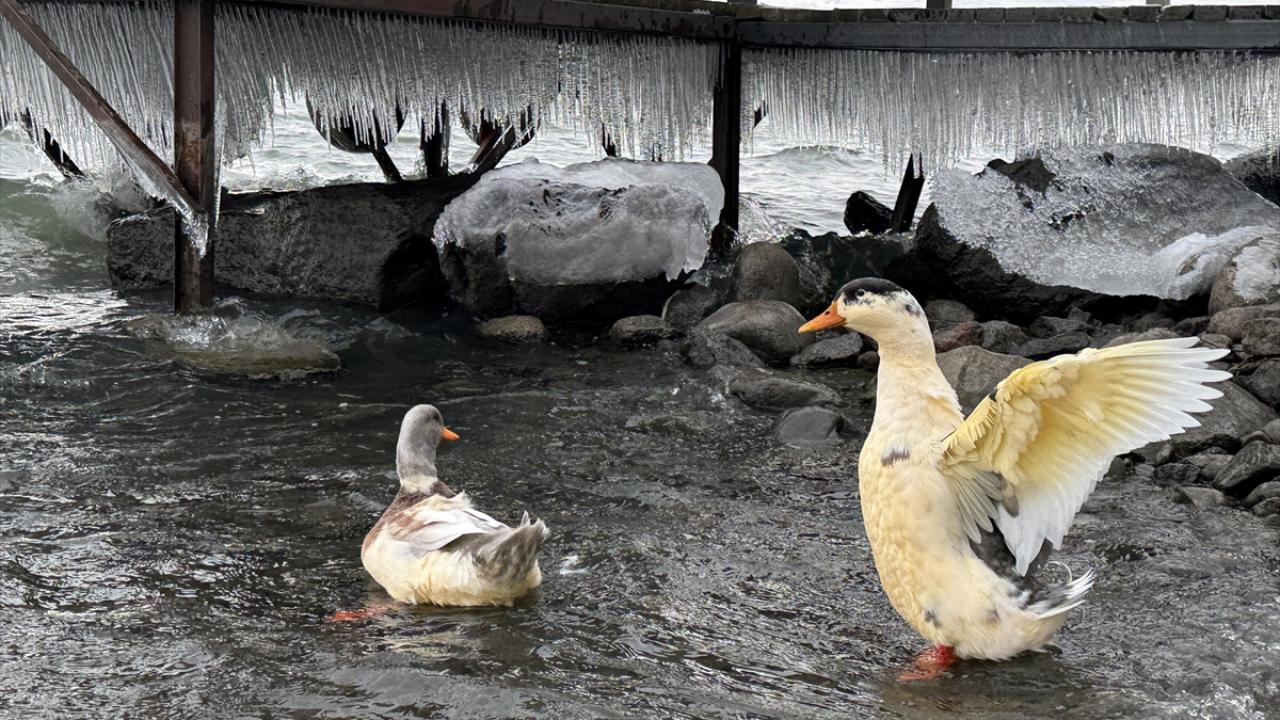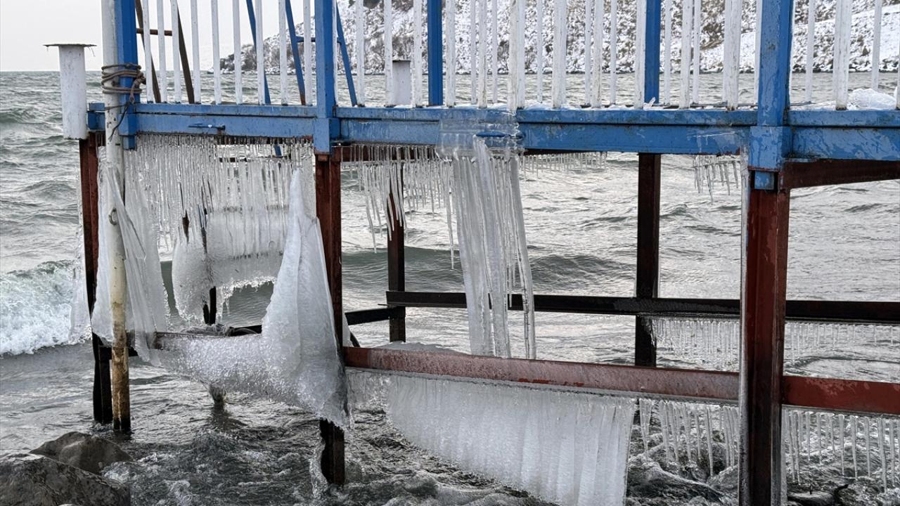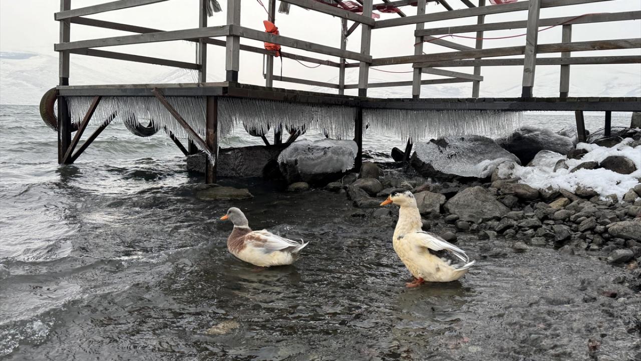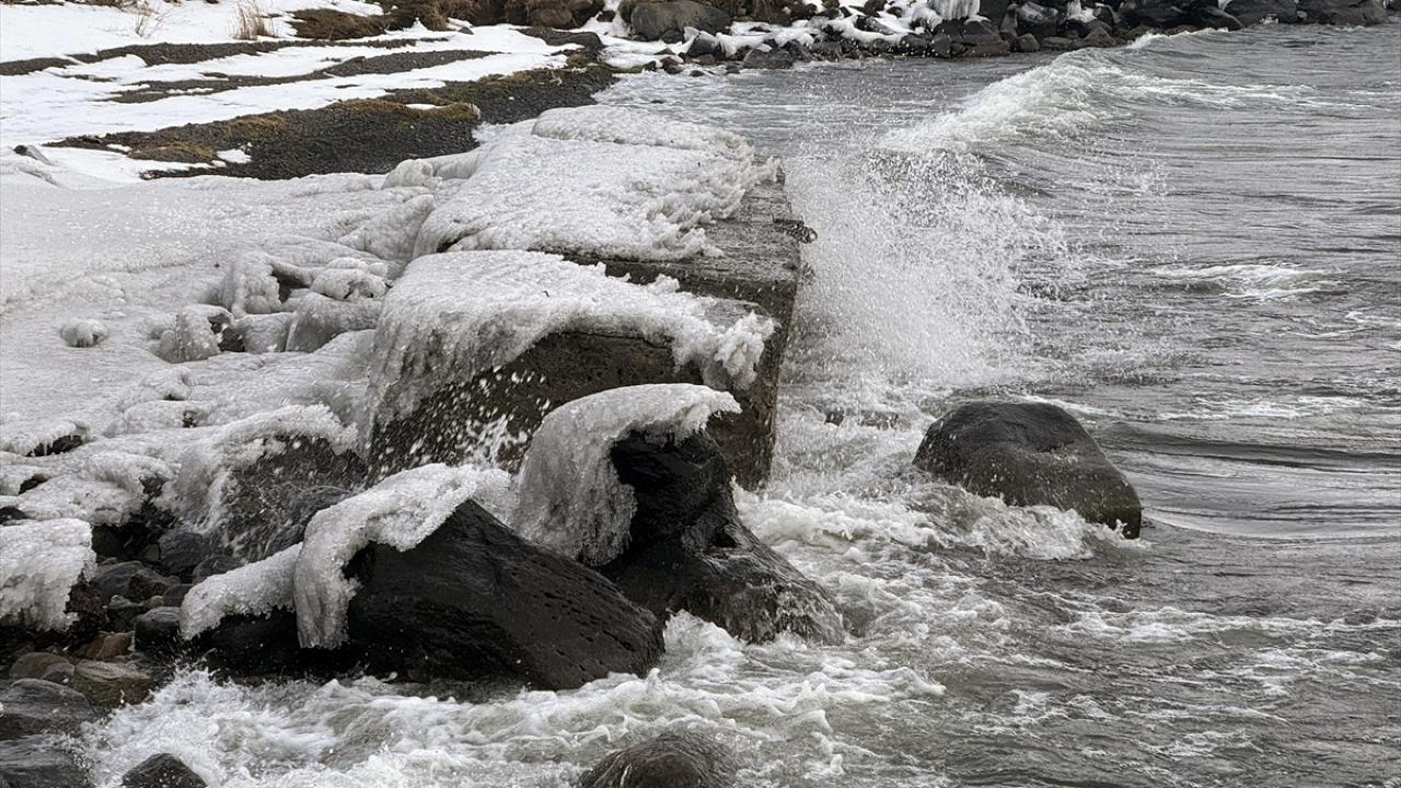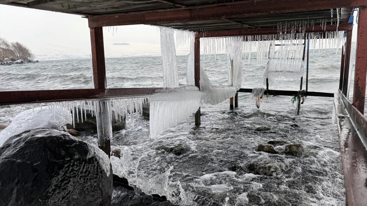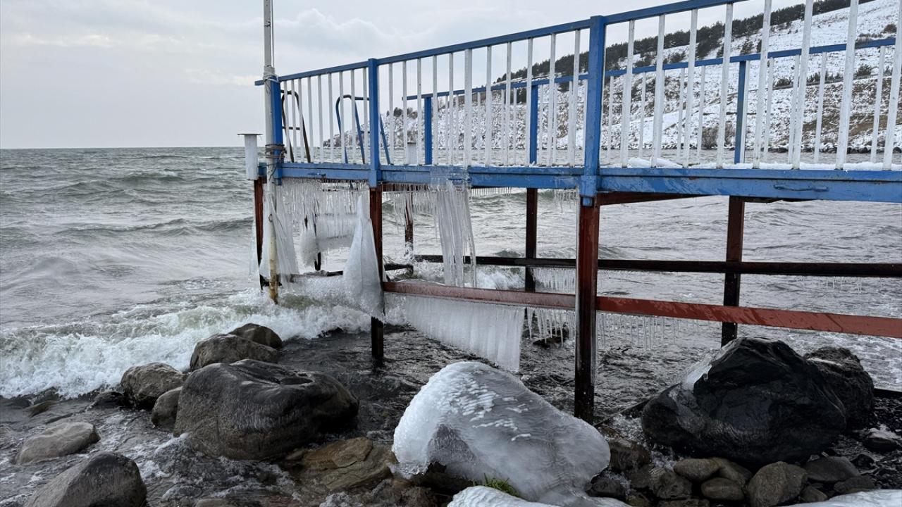 Gölün Ardahan tarafındaki bazı iskelelerinde dalgalar nedeniyle buz kütleleri ve sarkıtlar meydana geldi.
