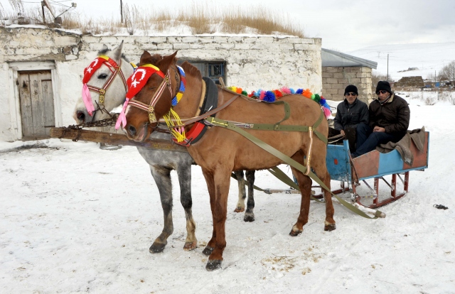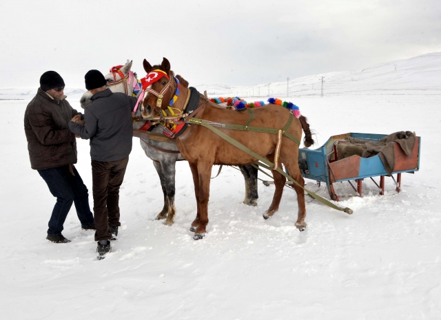 Çıldır Gölü'ndeki atlı kızakçılar misafirlerini bekliyor