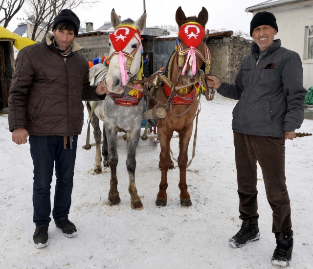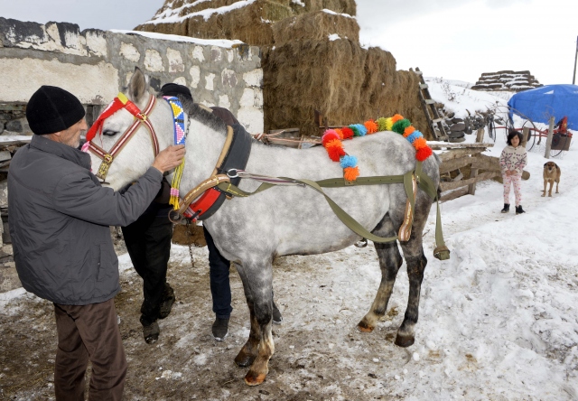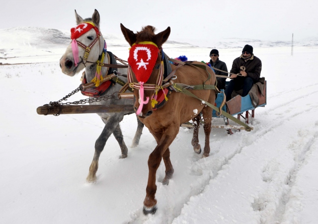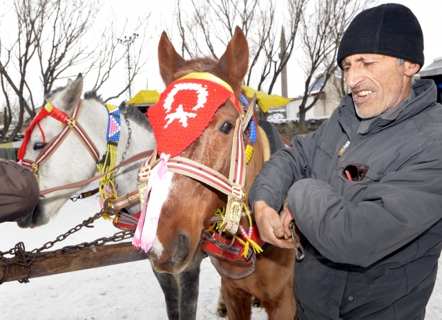 Doğu Anadolu'nun en büyük 2'nci gölü olan ve bugünlerde soğuk hava nedeniyle tamamen donan Çıldır Gölü'nde her kış turistlere turlar düzenleyen atlı kızakçılar, yeni sezon hazırlıklarını tamamlayıp misafirlerini beklemeye başladı.