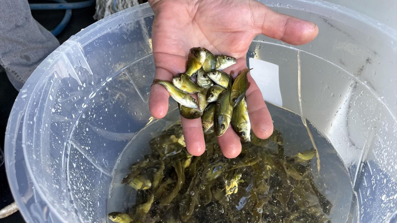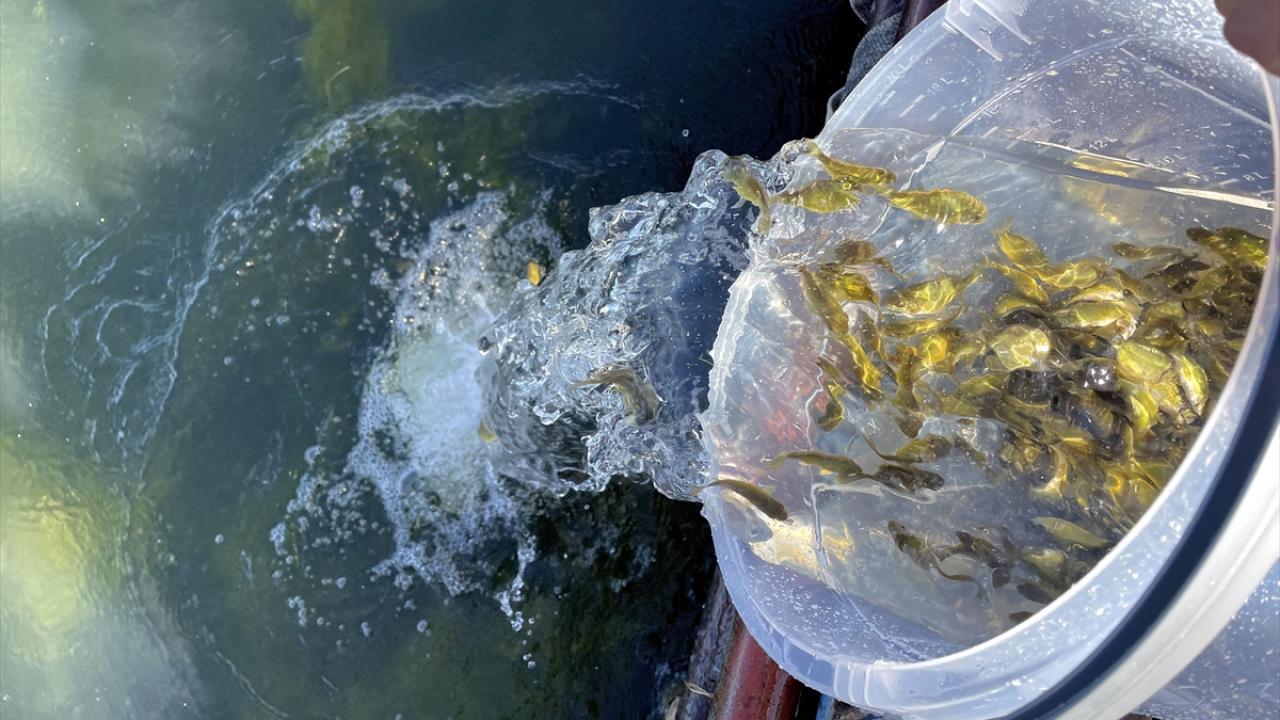 150 bin balık yavrusu, daha sonra göle bırakıldı.