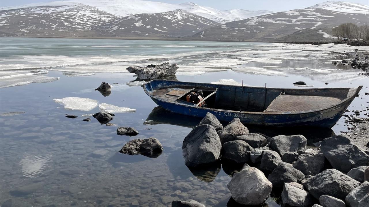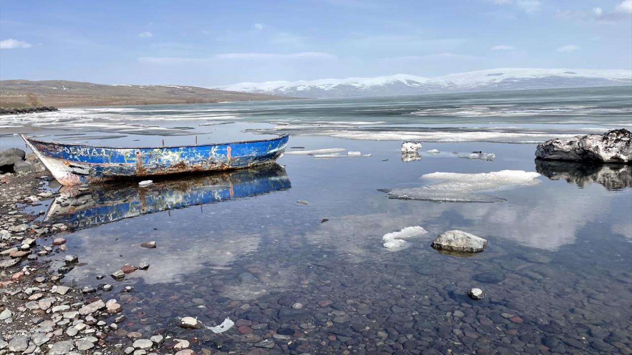 Çıldır Gölü'nün buz tabakası erimeye başladı