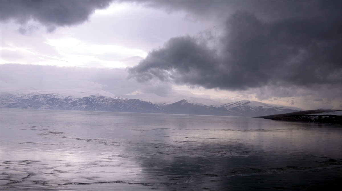Ardahan-Kars sınırlarında yer alan Çıldır Gölü'nün buzla kaplı yüzeyi, son günlerde havaların ısınmasıyla erimeye başladı.