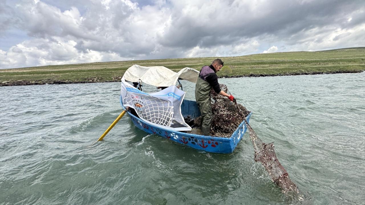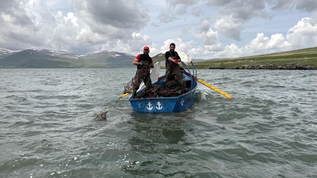 Çıldır Gölü`nün derinliklerinde canlıların yaşamlarını tehdit eden hayalet ağlar, dalgıçlar tarafından temizlendi.