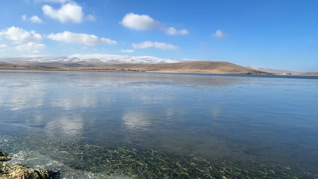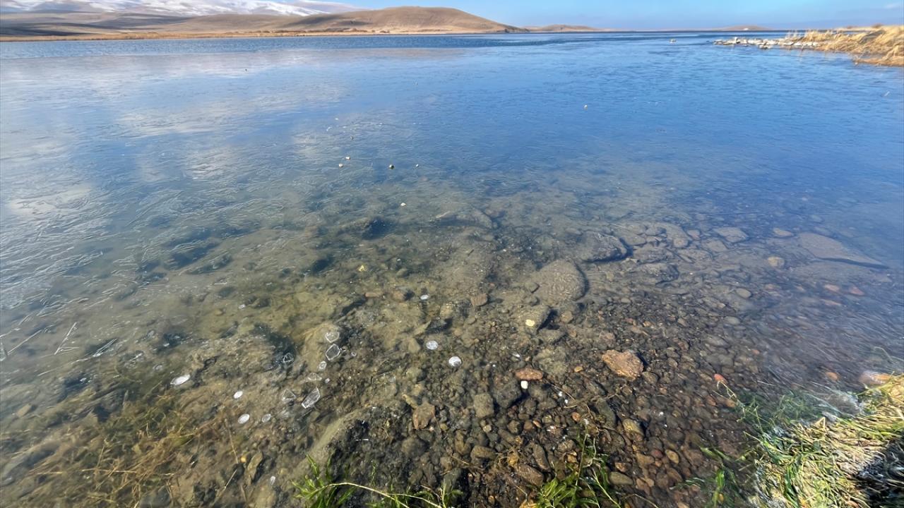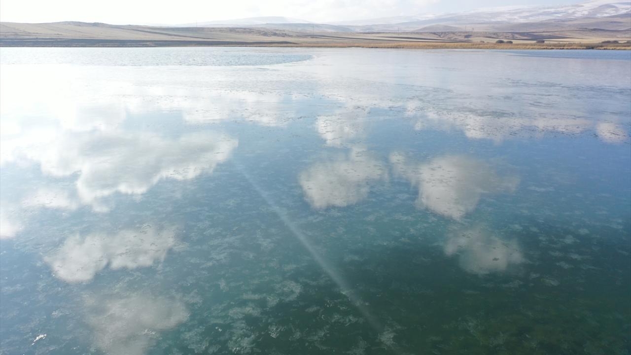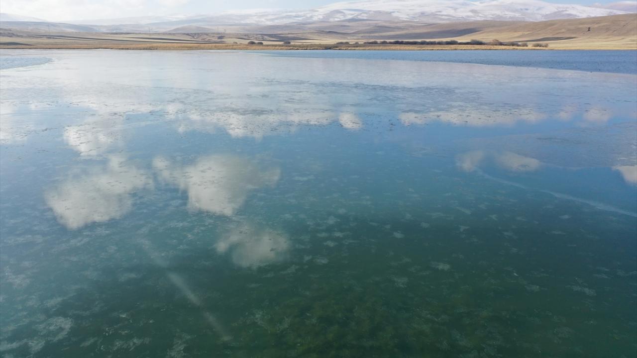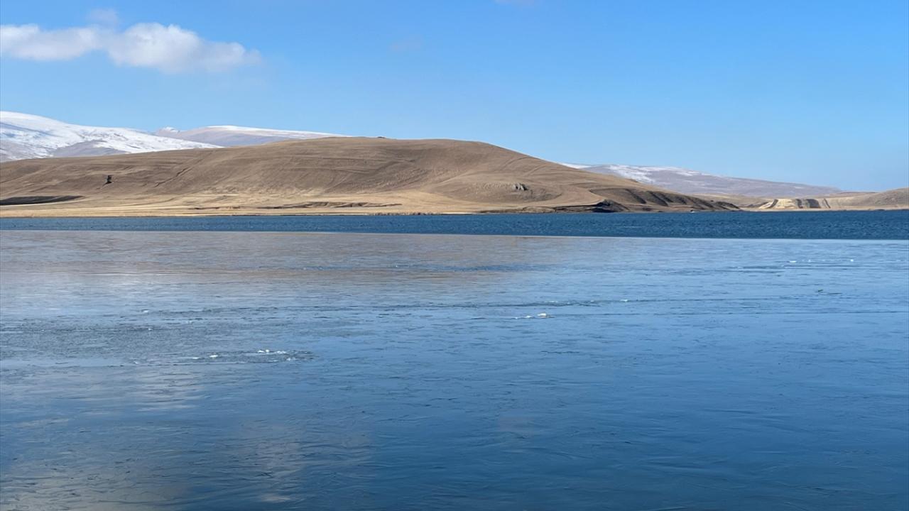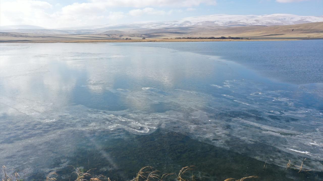 Kars-Ardahan sınırında yer alan 123 kilometrekare alana sahip Çıldır Gölü'nün yüzeyinde, bölgede etkili olan soğuk hava nedeniyle buz tabakaları oluştu.
