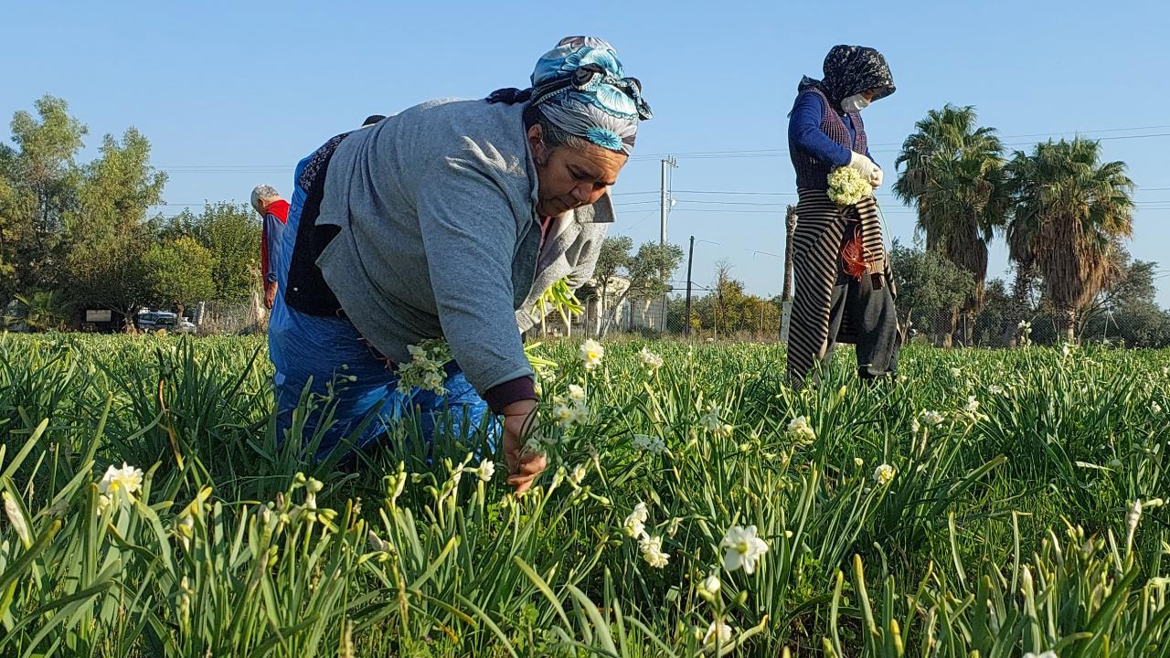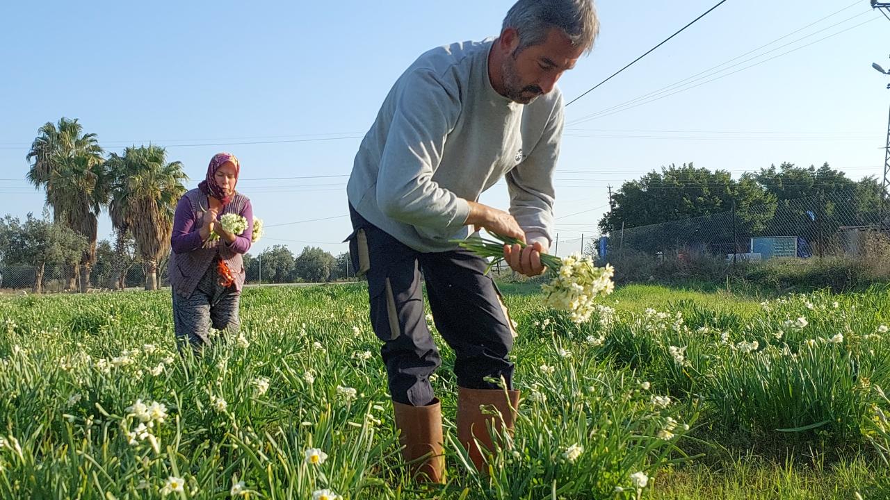 Mersin'in çileğiyle ünlü Silifke ilçesinde hava sıcaklığının mevsim normallerinin seyretmesiyle nergisler erkenden çiçek açtı. Hasadı yapılan çiçeklerin demeti 40 liraya alıcı buluyor.
