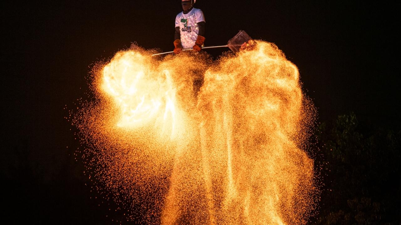 Çin'in Guangdong eyaletinde bulunan Guangzhou kentinde geleneksel bir ateş dans gösterisi gerçekleştirildi.