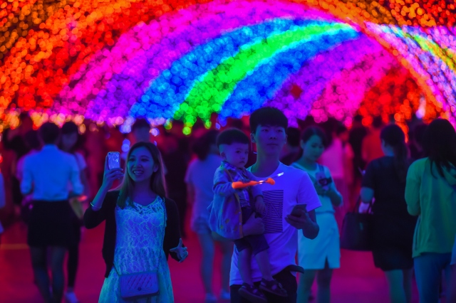 Çin'in Chengdu şehrinde milyonlarca led ışık kullanılarak yapılan ışık festivali ziyaretçileri ağırladı.