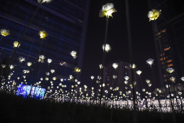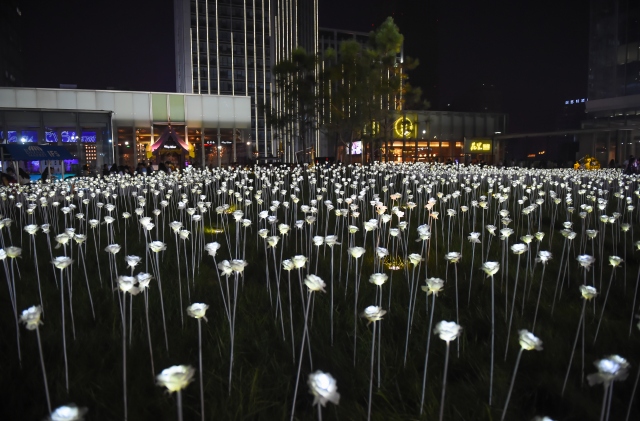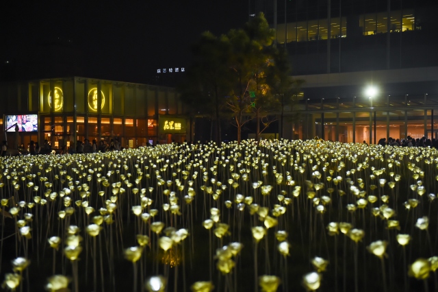 Çin'in Chengdu kentinde 25bin ledden yapılan yapay güllerden oluşan bahçe yerli ve yabancı ziyaretçilerin akınına uğruyor. Çiçek bahçesinde geceleri ışık oyunları sergileniyor.
