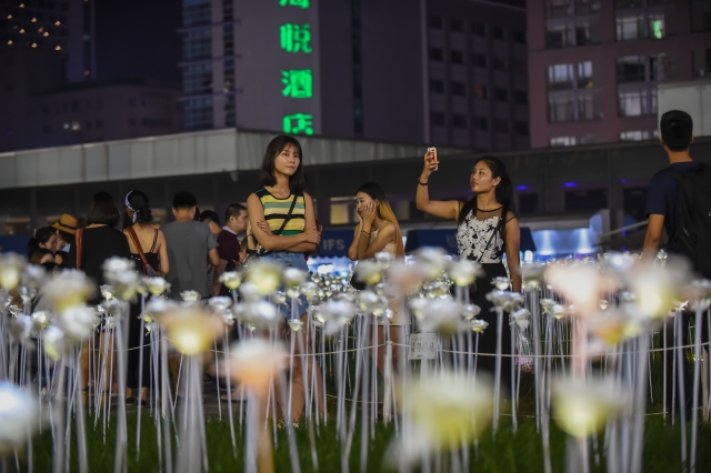 Çin'de ledlerden gül bahçesi