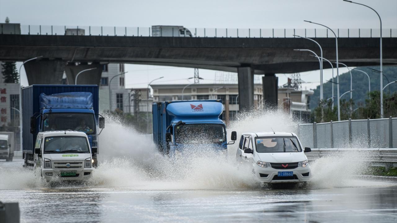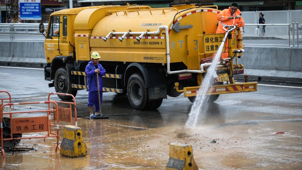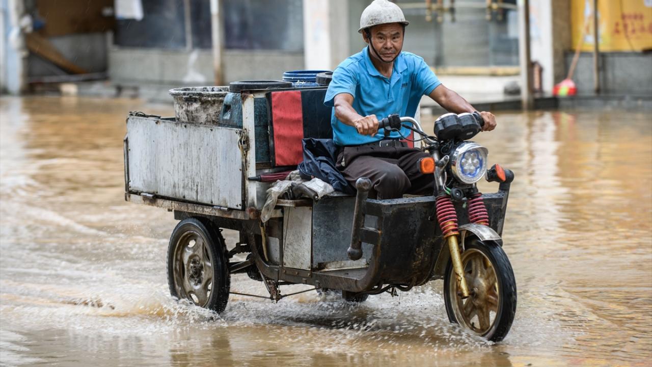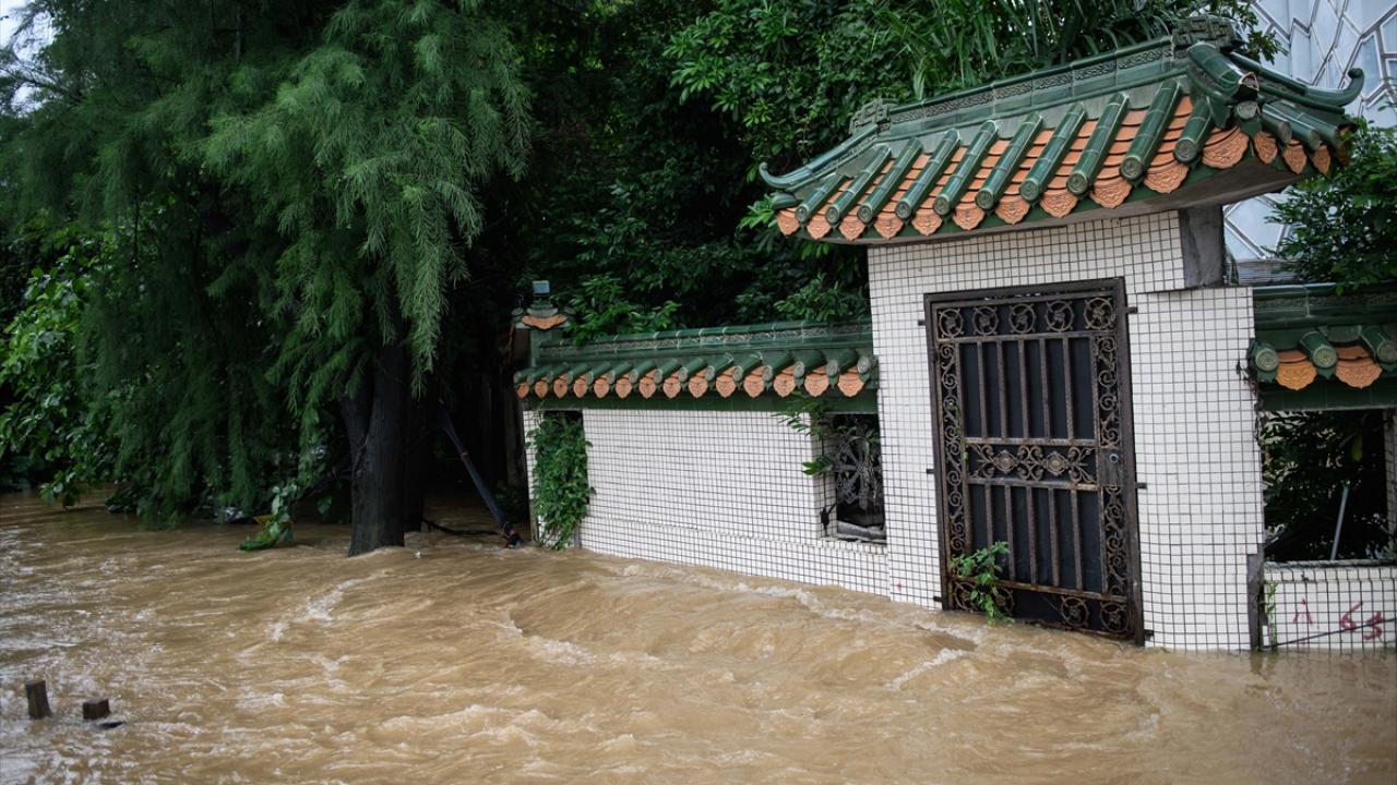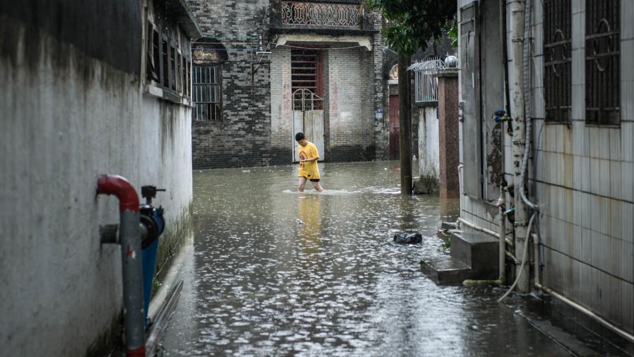 Zhongshan şehrinde aşırı yağış sonrası cadde ve sokaklarda su birikintileri oluştu.