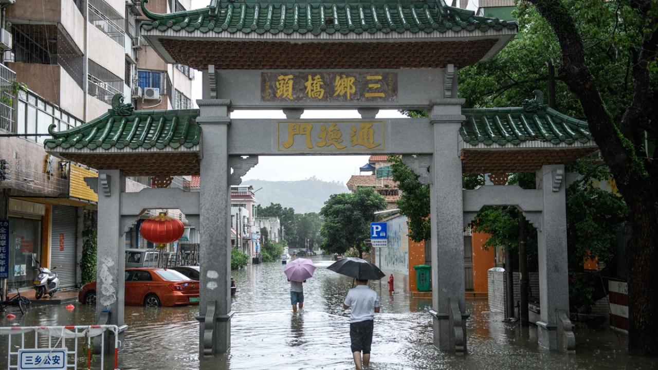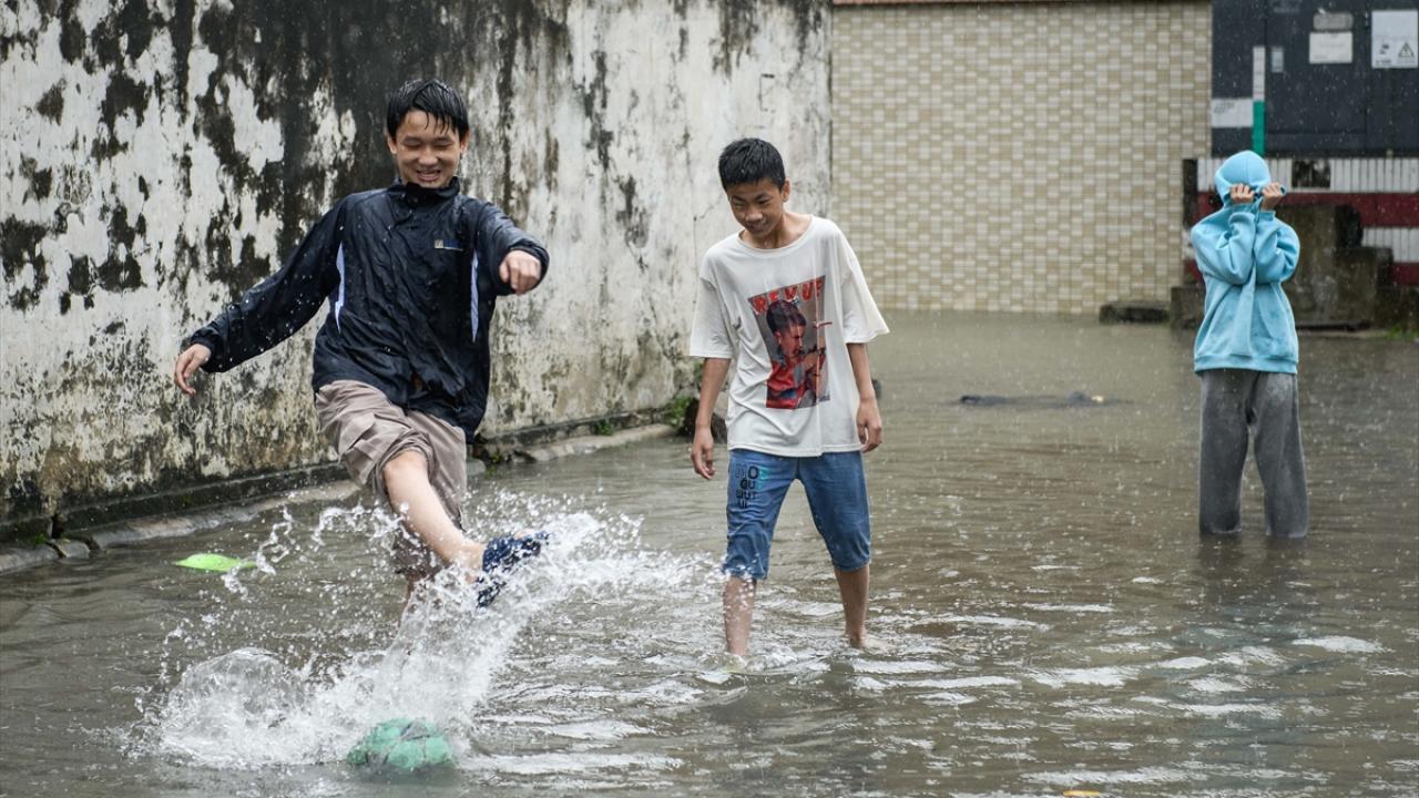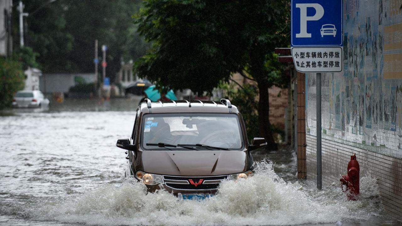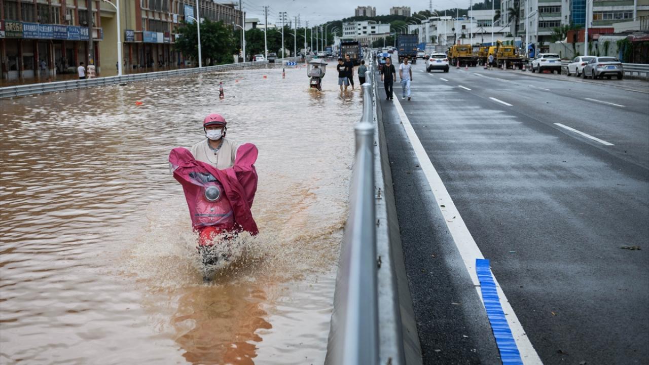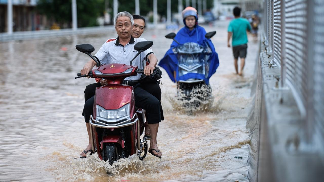 Zhongshan şehrinde aşırı yağış sonrası cadde ve sokaklarda su birikintileri oluştu.