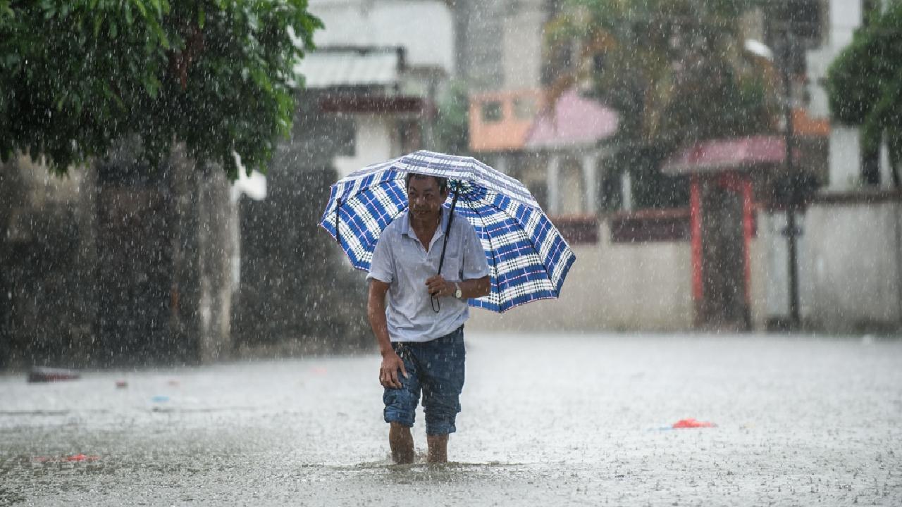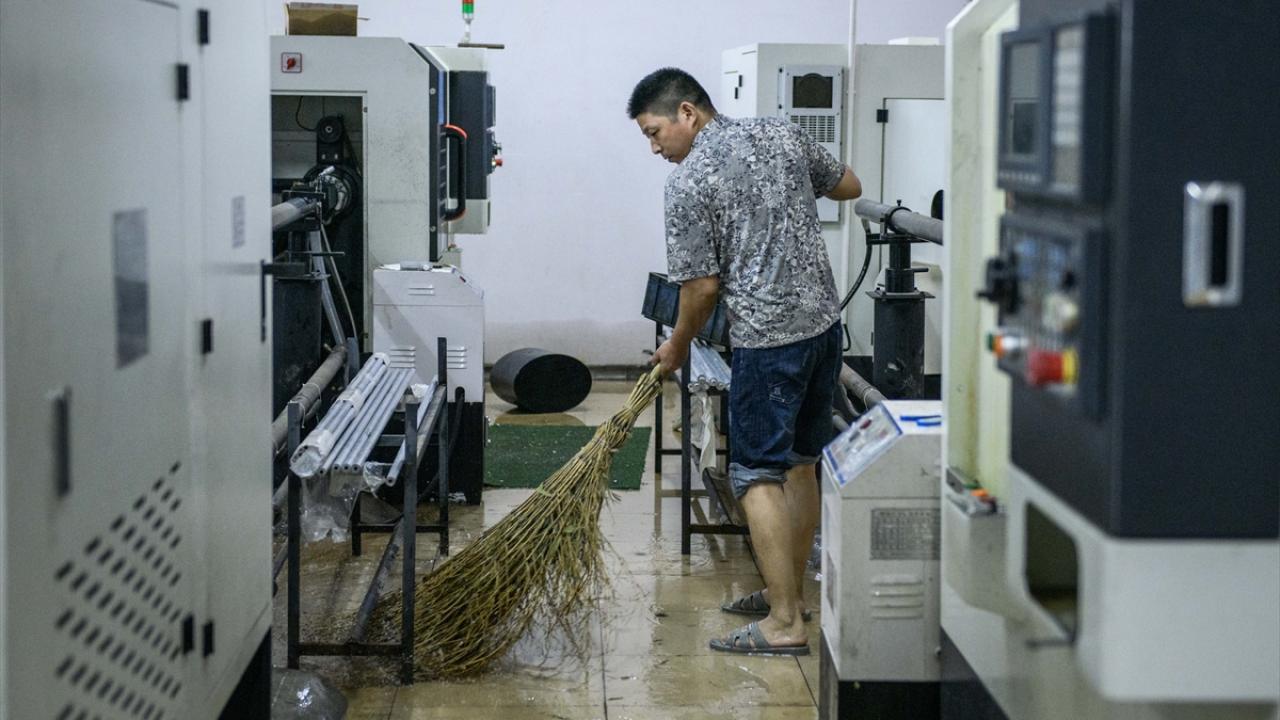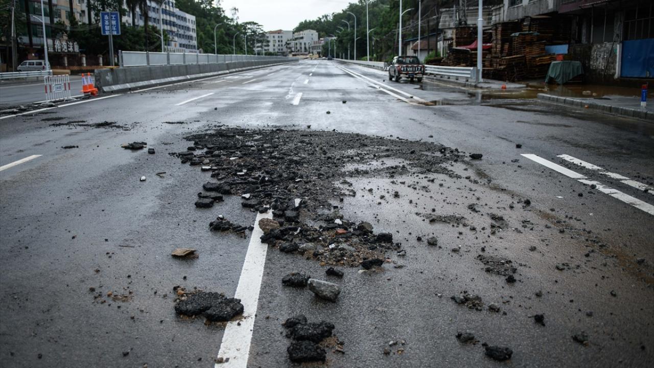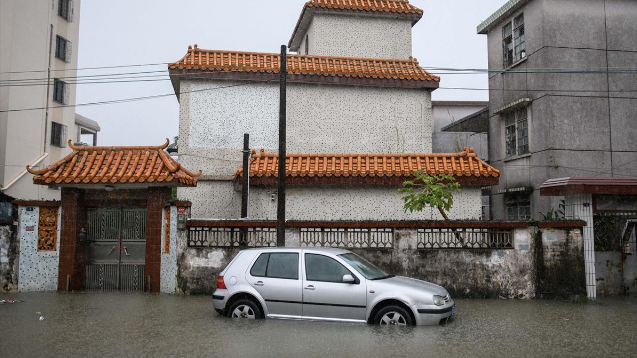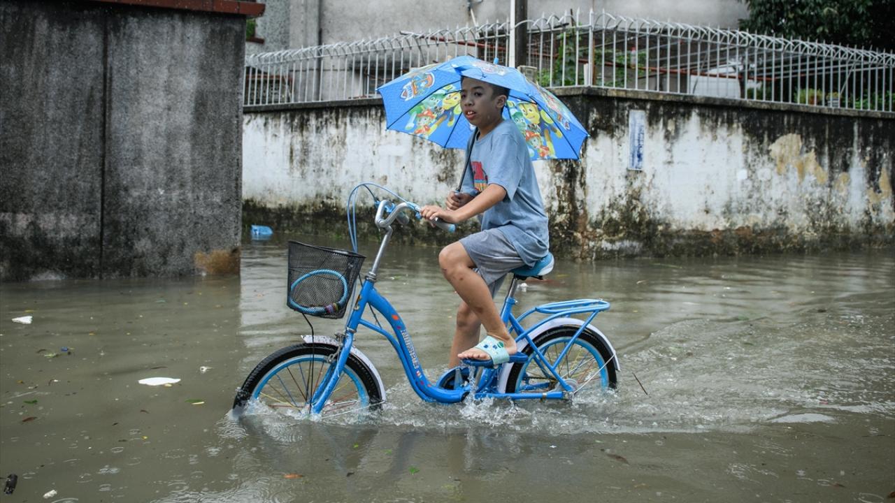 Zhongshan şehrinde aşırı yağış sonrası cadde ve sokaklarda su birikintileri oluştu.