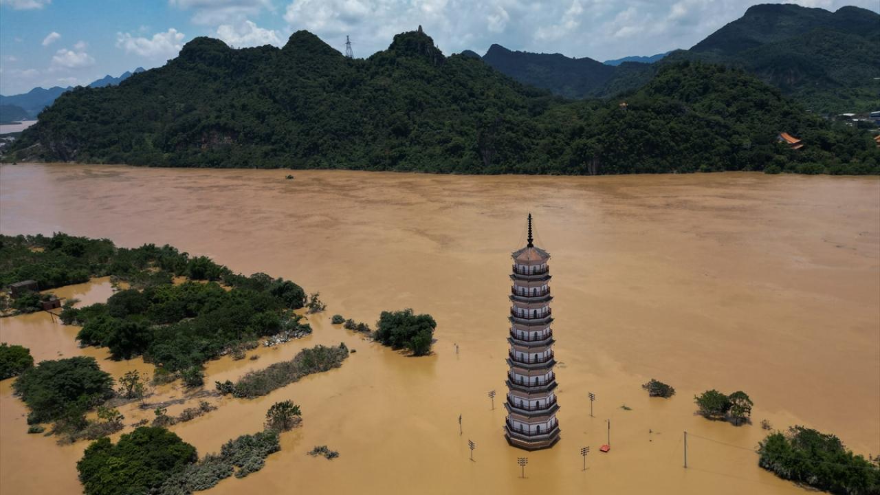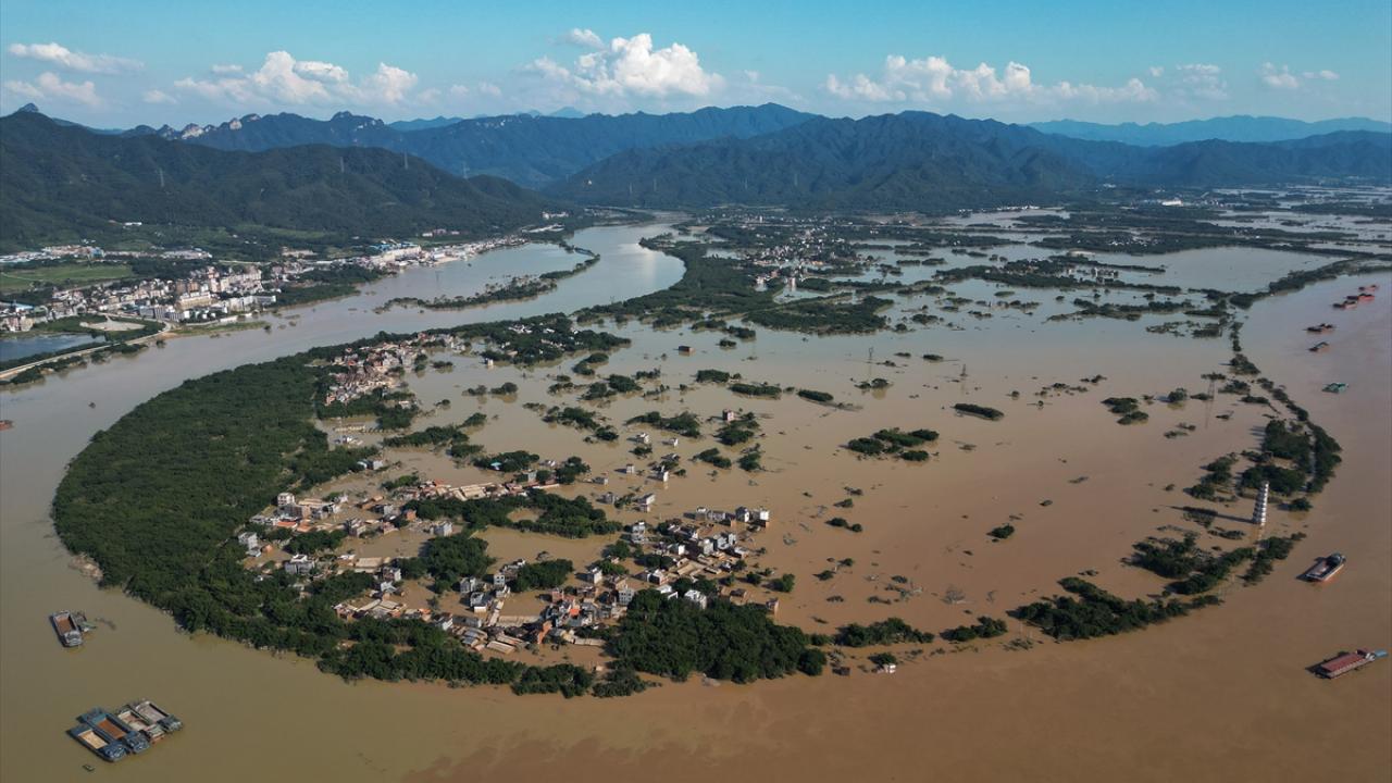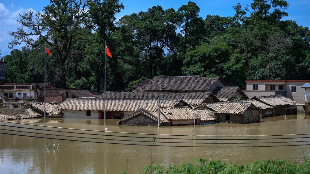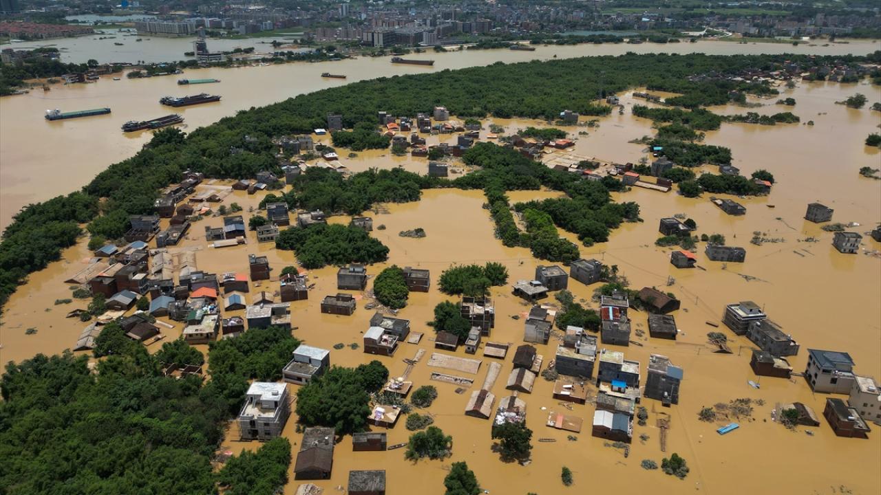 Çin'in Guangdong eyaletindeki Yingde kentinde etkili olan şiddetli yağışlar nedeniyle sel meydana geldi.