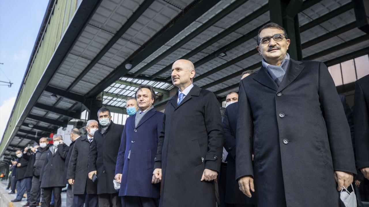 Enerji ve Tabii Kaynaklar Bakanı Fatih Dönmez ile Ulaştırma ve Altyapı Bakanı Adil Karaismailoğlu, Rusya'ya ve Çin'e gidecek ihracat trenlerinin Ankara Gar'dan uğurlanması törenine katıldı.