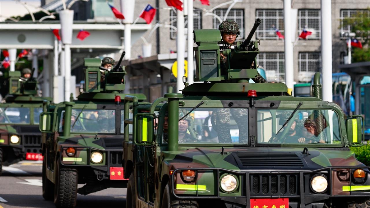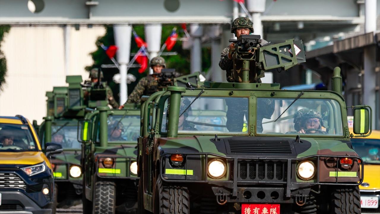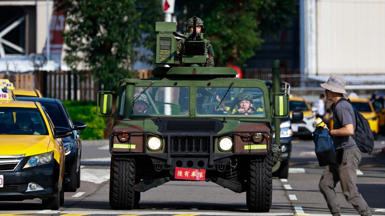Askeri tatbikatın başlamasının ardından Tayvan ordusuna ait zırhlı araçlar, başkent Taipei`deki Songshan Havaalanı çevresinde devriye gezmeye başladı.