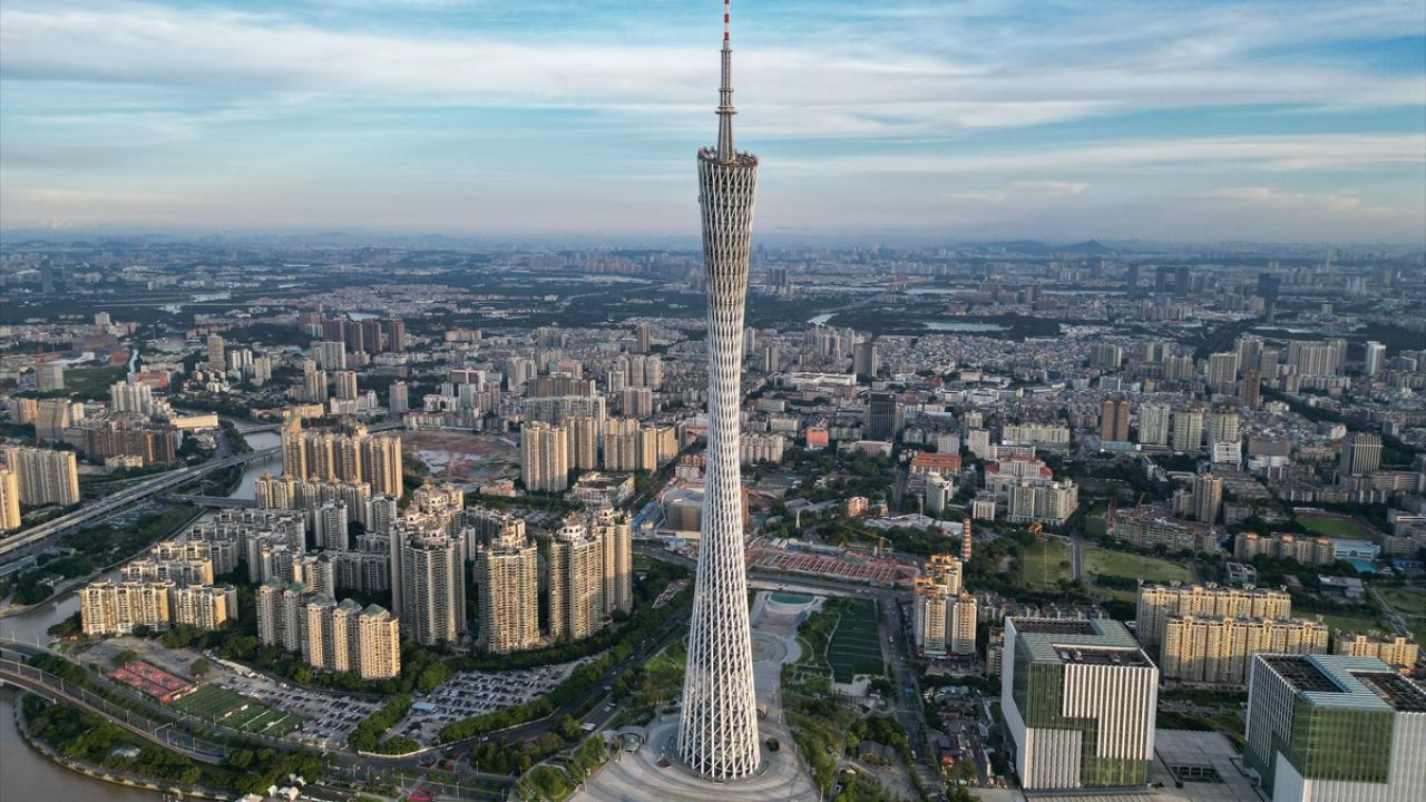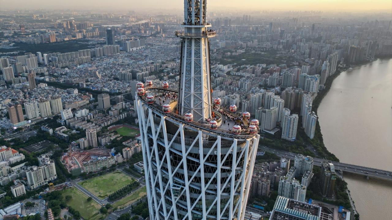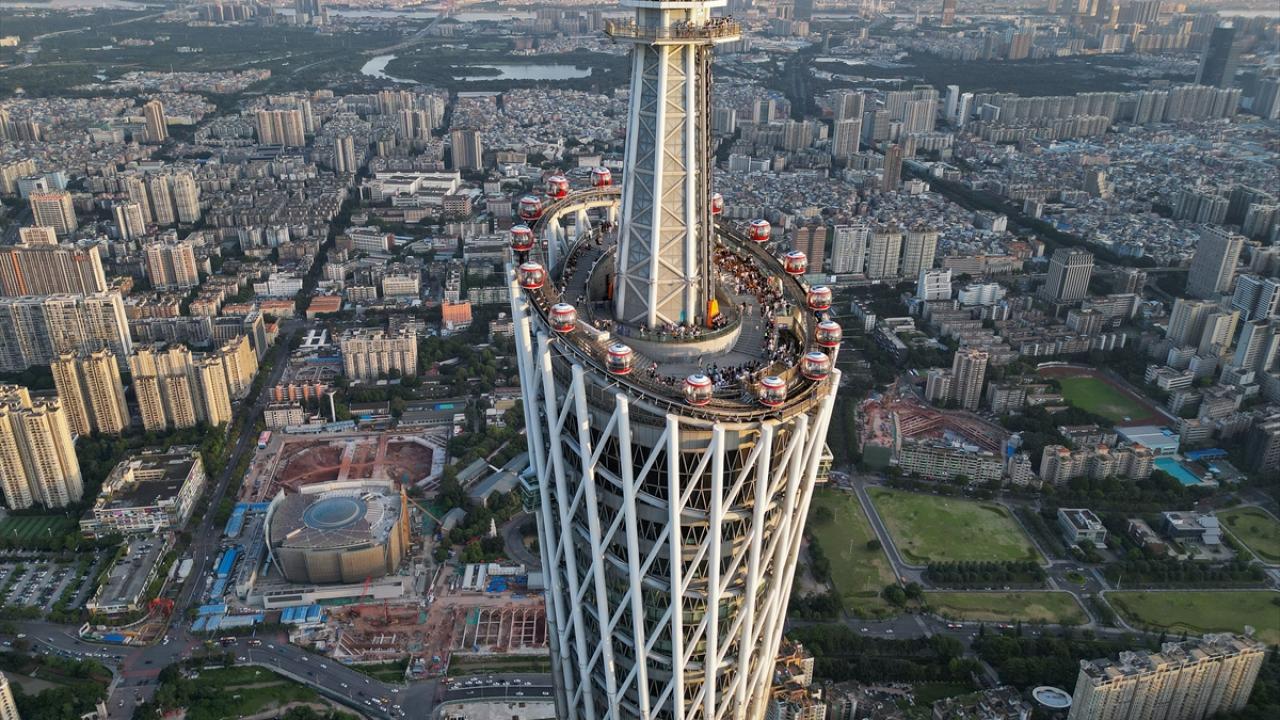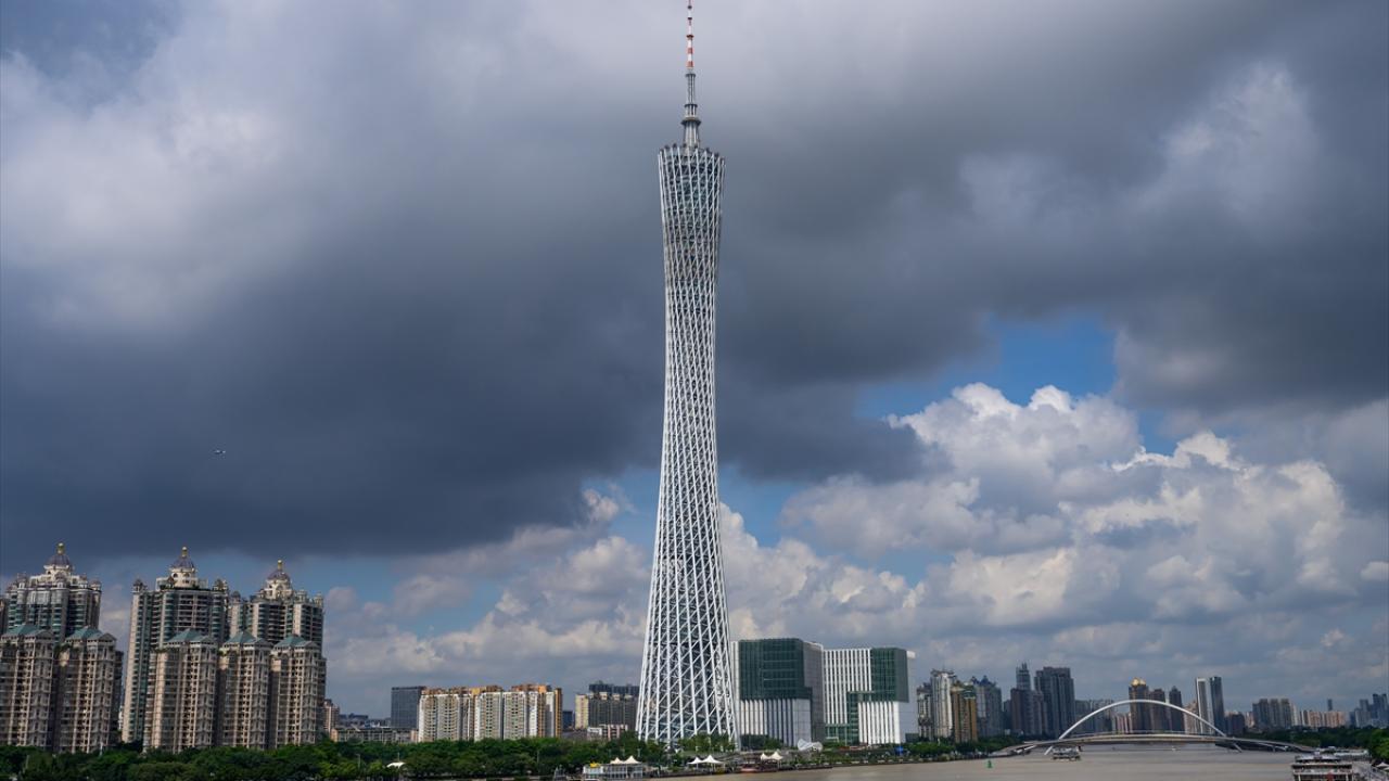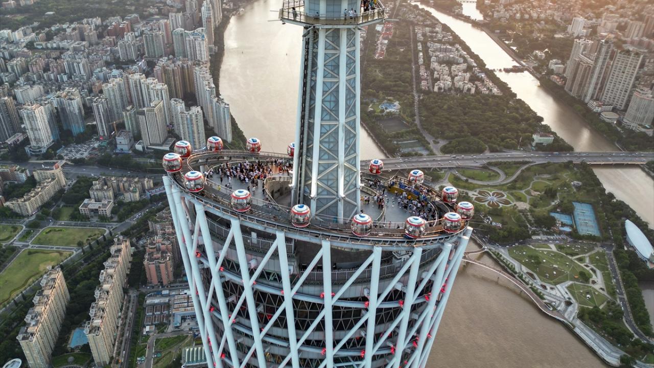 Çin’in Guangzhou kentinde yer alan ve 600 metre yüksekliğe sahip Çin'in en uzun ikinci, dünyanın ise en uzun üçüncü kulesi olan Kanton Kulesi, ziyaretçiler tarafından ilgi görüyor.