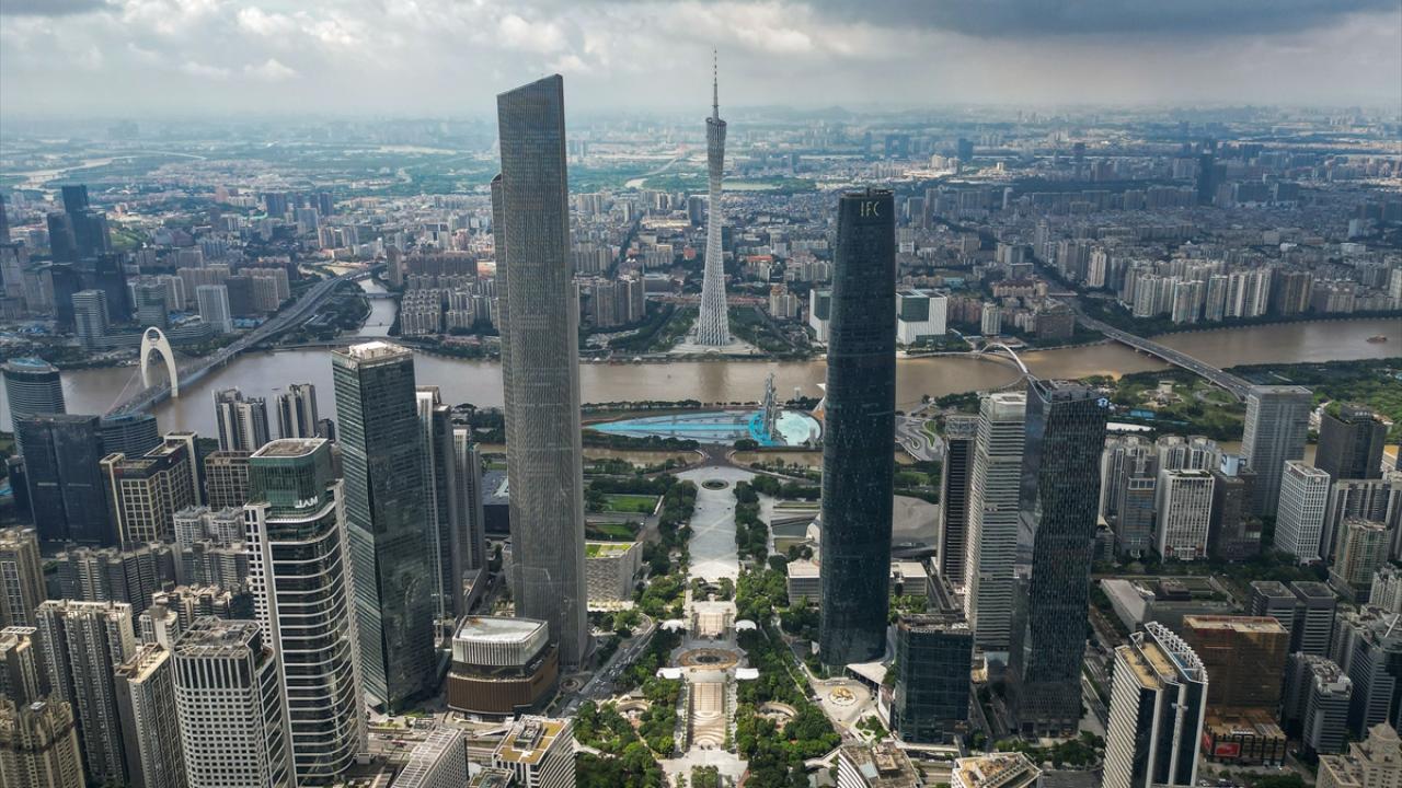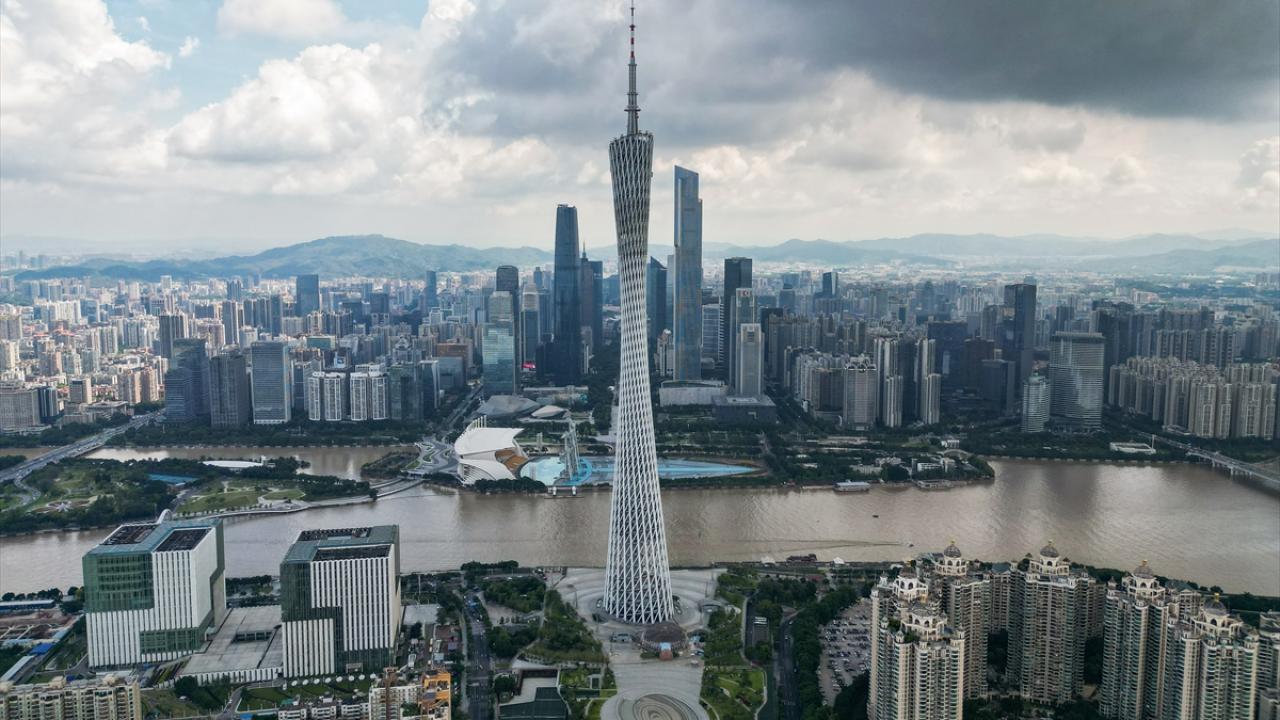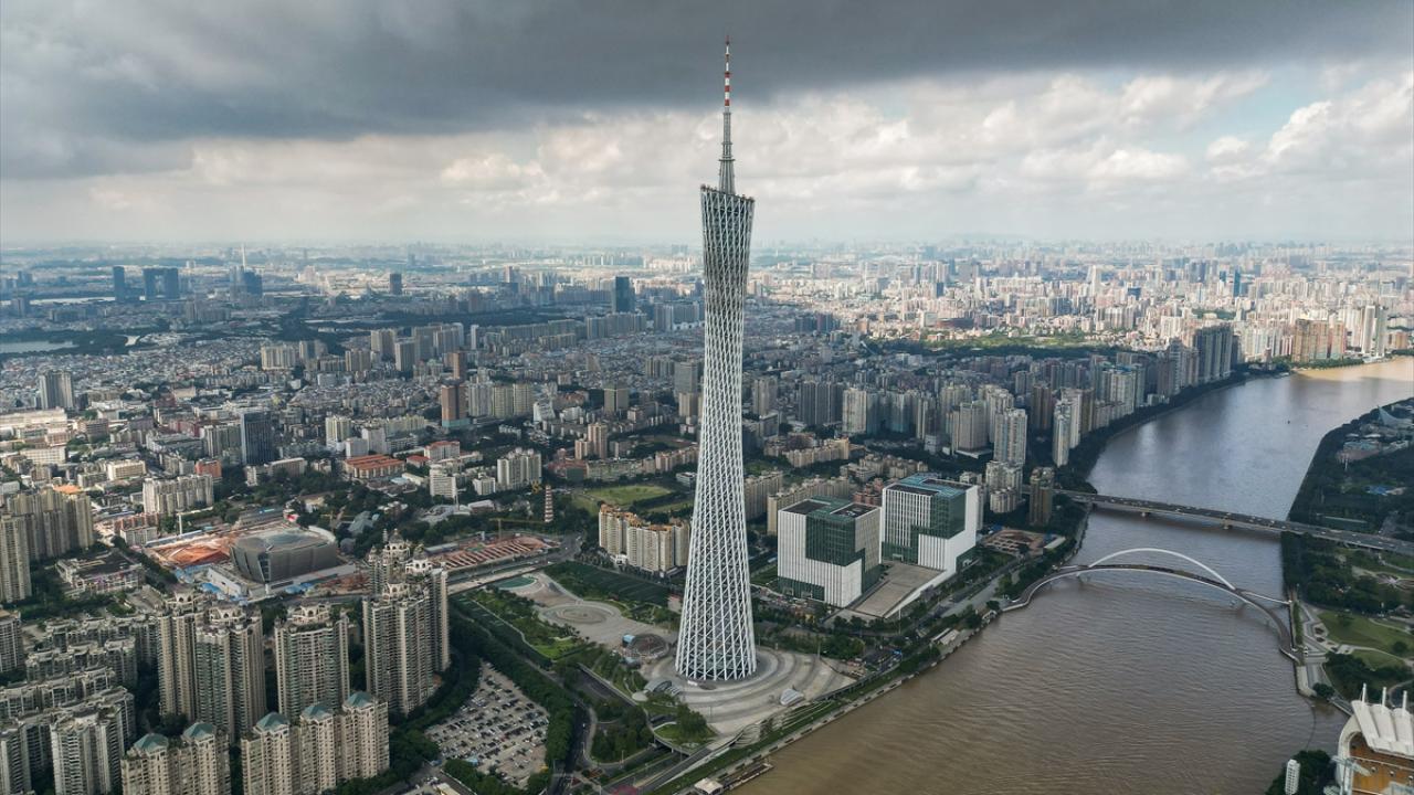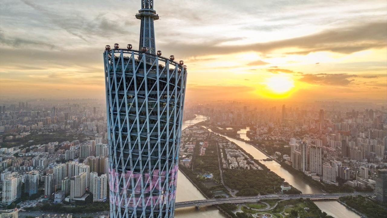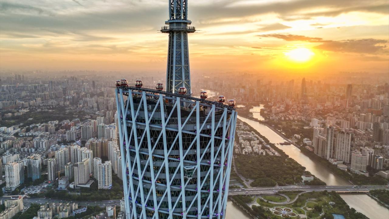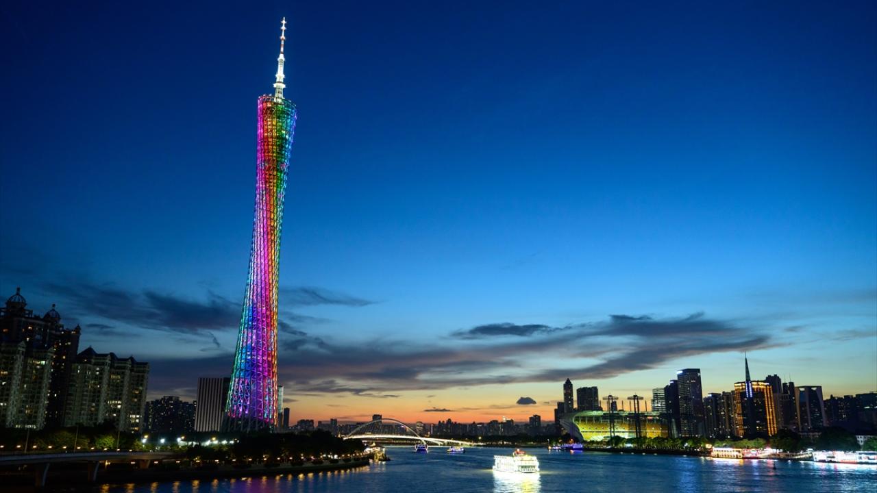 Çin’in Guangzhou kentinde yer alan ve 600 metre yüksekliğe sahip Çin'in en uzun ikinci, dünyanın ise en uzun üçüncü kulesi olan Kanton Kulesi, ziyaretçiler tarafından ilgi görüyor.