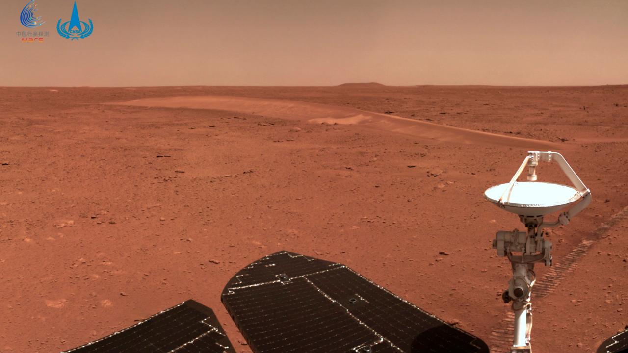 Zhurong, görüntüleri Mars yüzeyinde seyahat ederken çekti. Araç, kızıl gezegene indiği günden bu yana 300 metre yol kat etti.