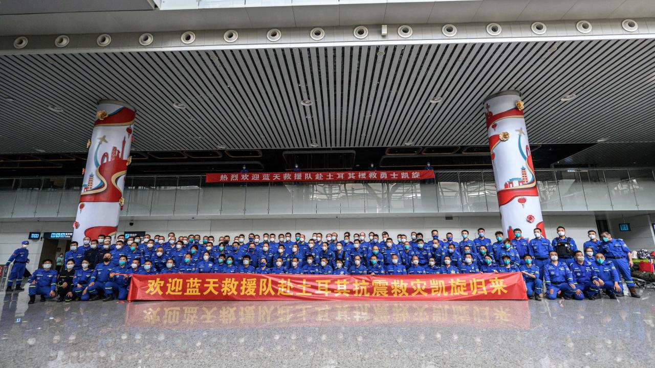 Kahramanmaraş merkezli depremlerin ardından, deprem bölgesinde arama kurtarma çalışmalarına tamamlayan Çinli Mavi Gökyüzü kurtarma ekibi (Blue Sky Rescue, BSR) ülkelerine döndü.
