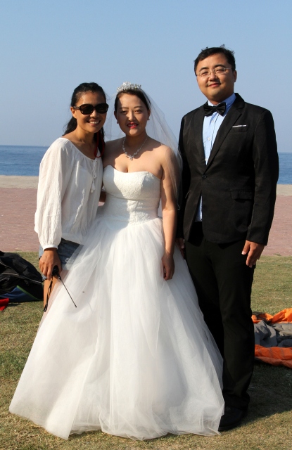 Çinli çift, gelinlik ve damatlıkla uçtu