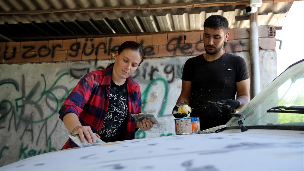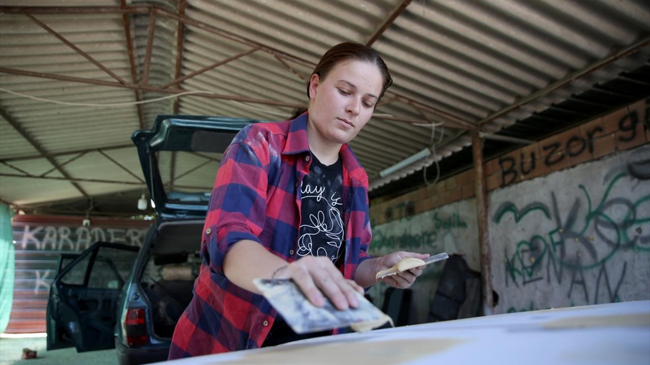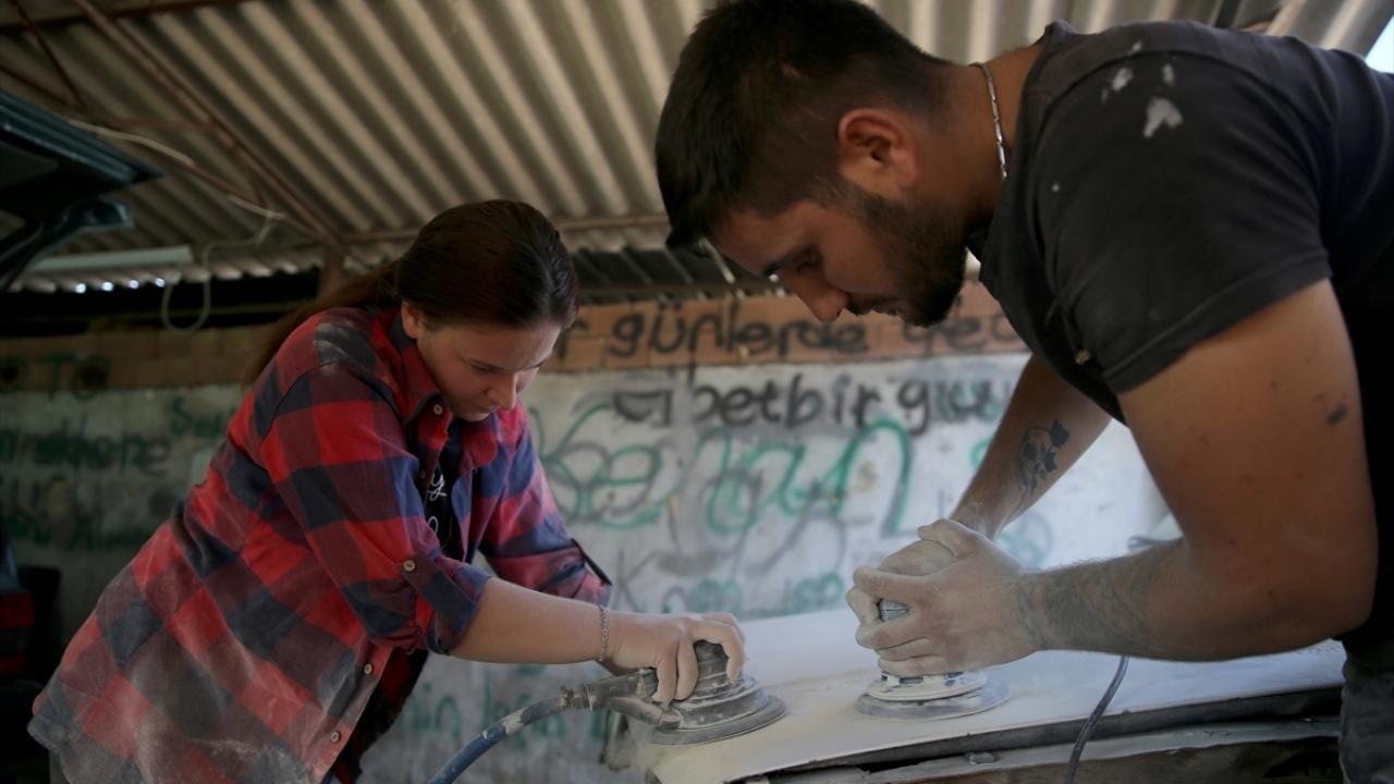 Muğla'nın Seydikemer ilçesinde iş yerinde eşini ziyaretleri sırasında merak sardığı kaportacılığı öğrenen Fatma Karadere, çırak sorunu yaşayan eşiyle çalışmaya başladı.