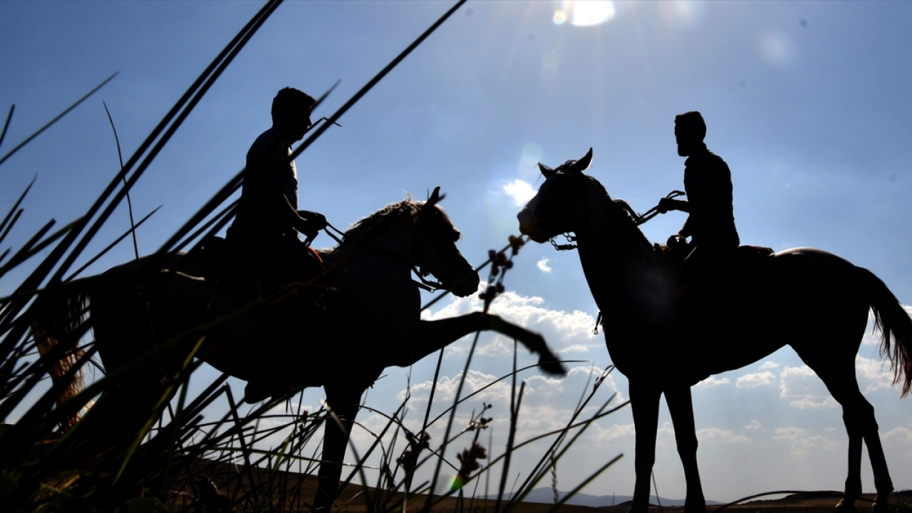 Orta Asya'dan Anadolu'ya uzanan ve Kars'ın Selim ilçesinde kışın kar üzerinde oynanarak yaşatılmaya çalışılan ata sporu ciritte kullanılan atlar, sıcaktan etkilendikleri için sahipleri tarafından akarsularda serinletilmeye çalışılıyor.