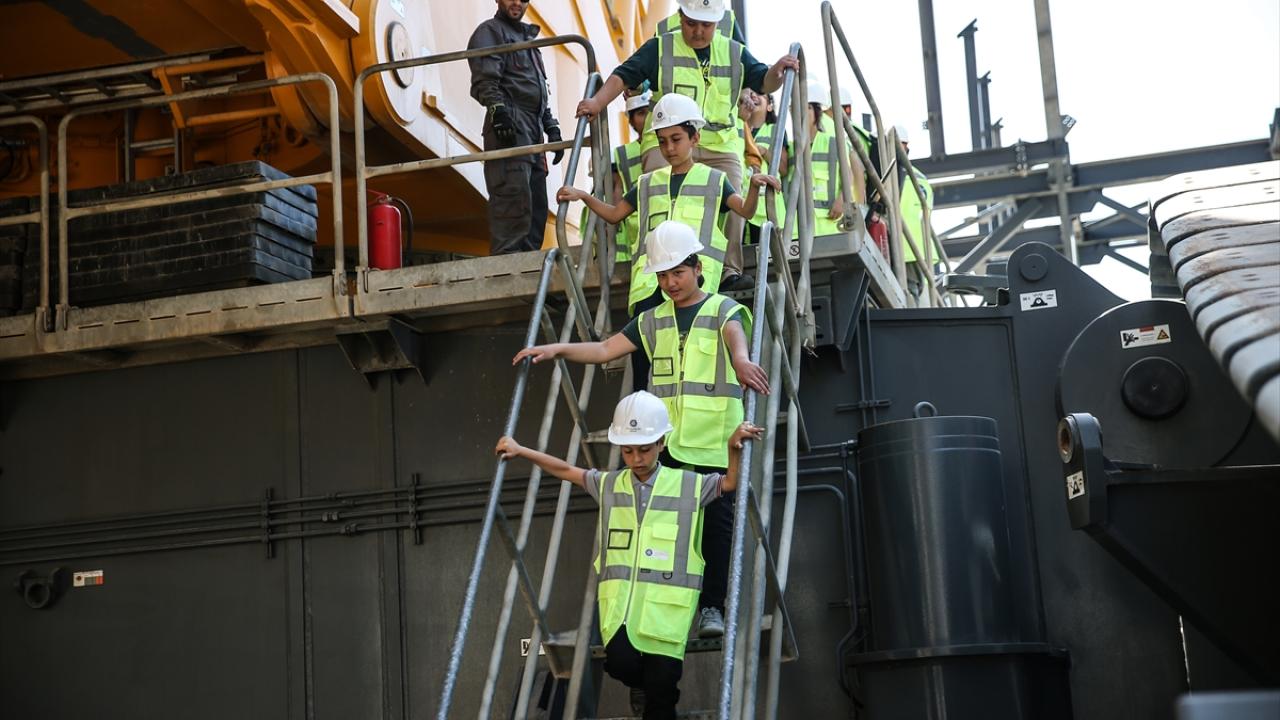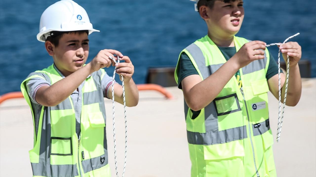 Daha sonra Akkuyu NGS`ye ekipman ve malzeme getiren gemilerin boşaltıldığı Doğu Kargo Terminali`ne geçen çocuklar, burada liman işleyişi hakkında bilgi aldı.