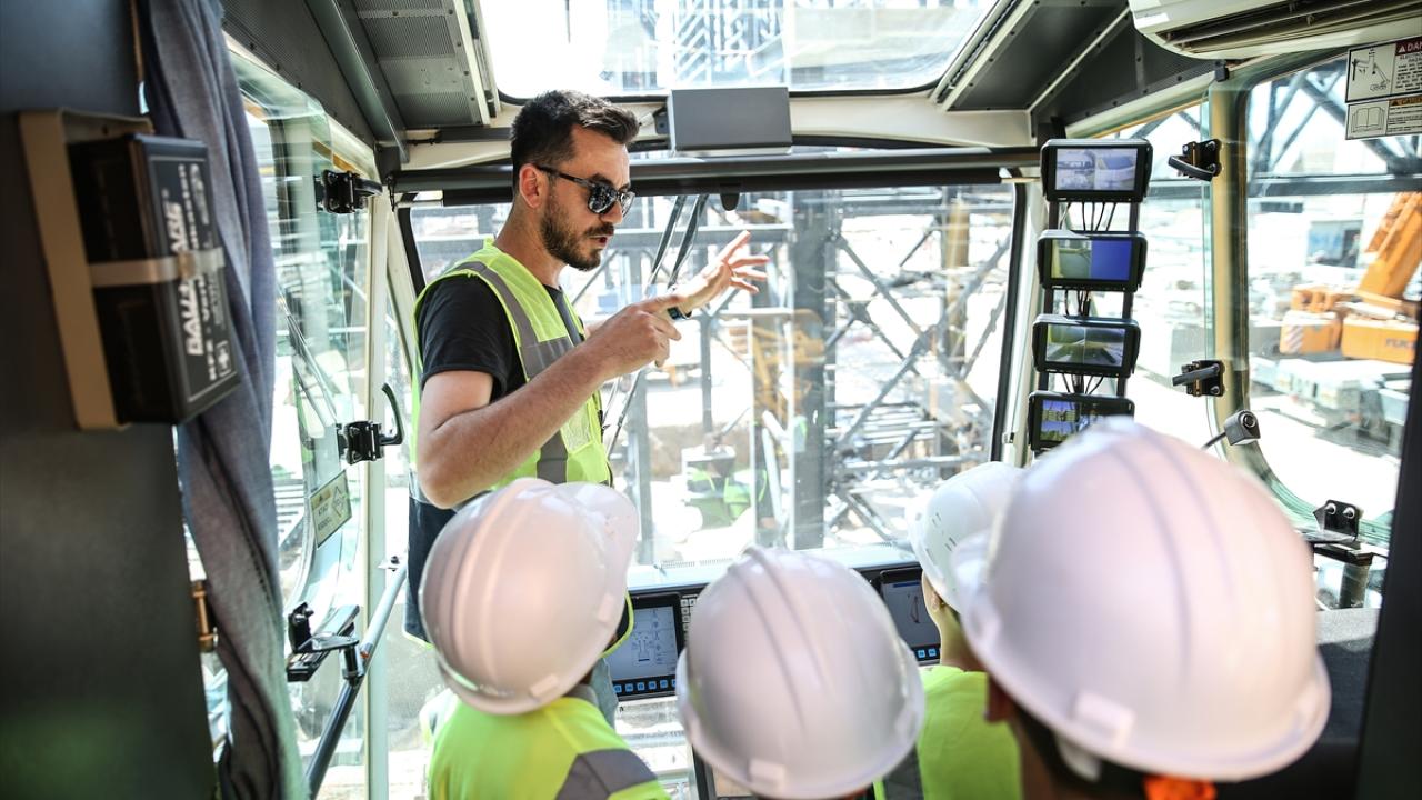 Gezi kapsamında her öğrenci paletli vincin operatör koltuğuna da oturdu.