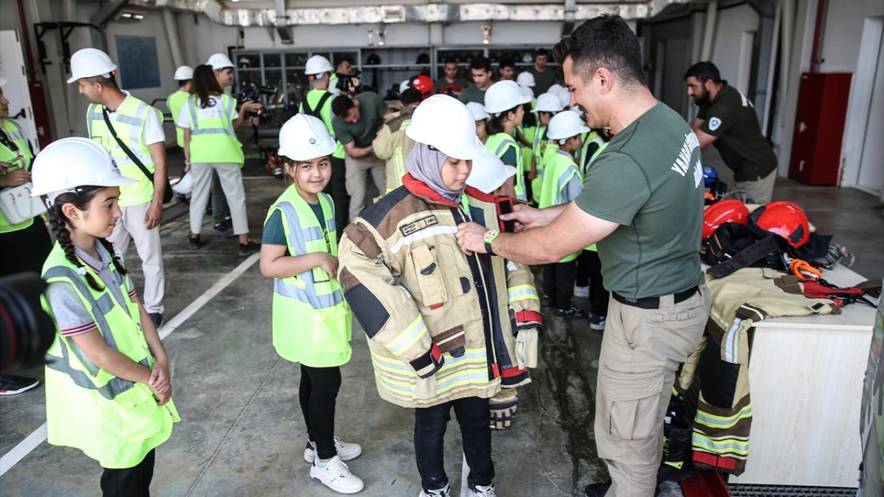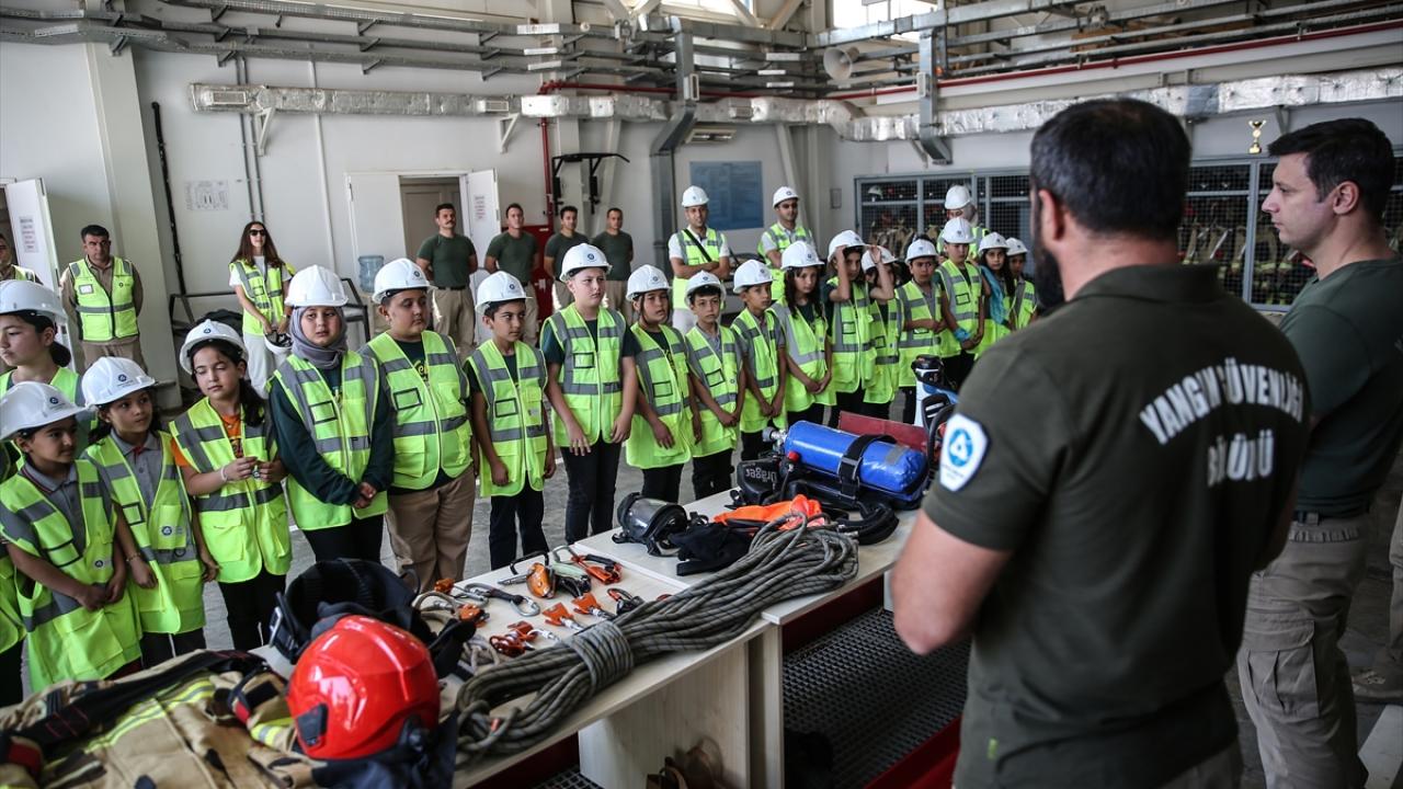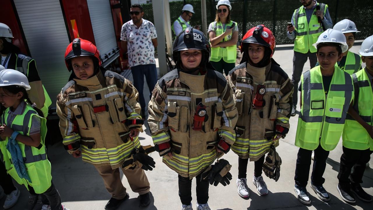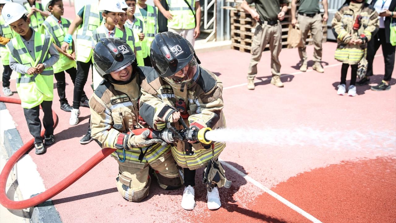 İtfaiye biriminde de çocuklara, acil durumda hızlı müdahale yöntemleri anlatıldı. Yangın söndürme ekipmanlarını inceleyen çocuklar, burada senaryo gereği çıkan yangına müdahale eden itfaiye ekiplerinin tatbikatını da izledi.