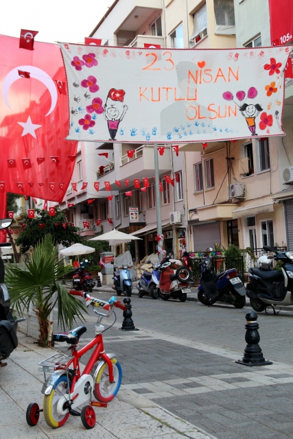Muğla'nın Marmaris ilçesinde yaşadığı sokağı bayraklar ve posterlerle donatıp 4 yıldır çocuklara özel 23 Nisan kutlaması yapan terzi Salih Yazgan, bu yılki kutlamaları daha büyük bayraklarla komşu sokaklara da yaşatacak. Çocuklar için çeşitli eğlence programlarının da düzenlendiği sokaktaki etkinliğin hazırlığında, terzi Yazgan'a mahalleliler de yardım etti.