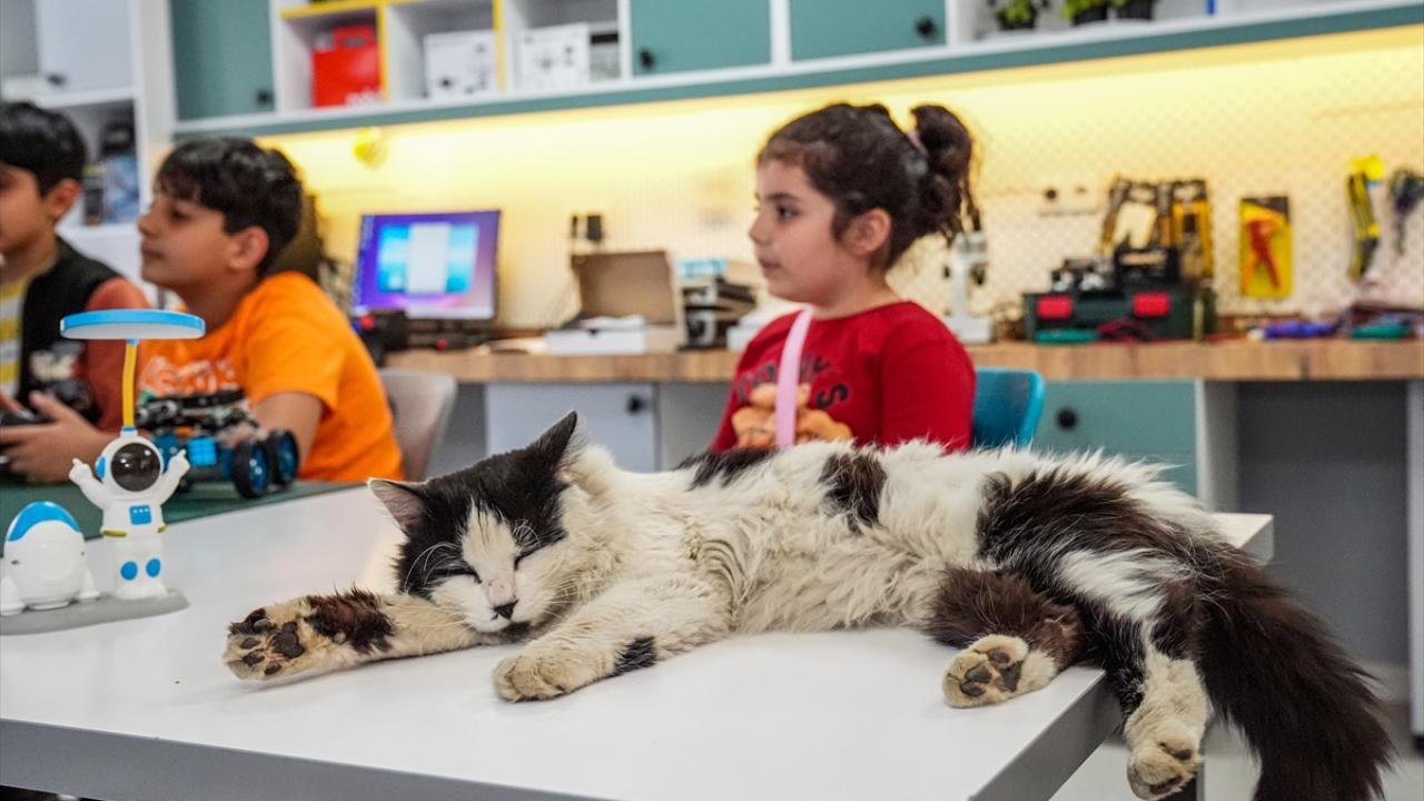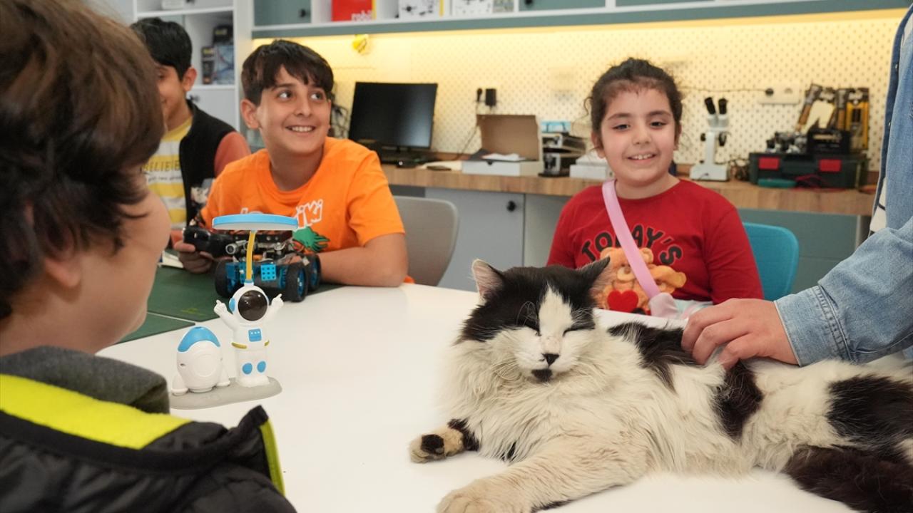Diyarbakır'da Bilim ve Sanat Merkezinde (BİLSEM) eğitim gören öğrencilere, sokakta yaralı buldukları ve tedavisinin ardından sahiplenerek "Einstein" adını verdikleri kedi, motivasyon kattı.