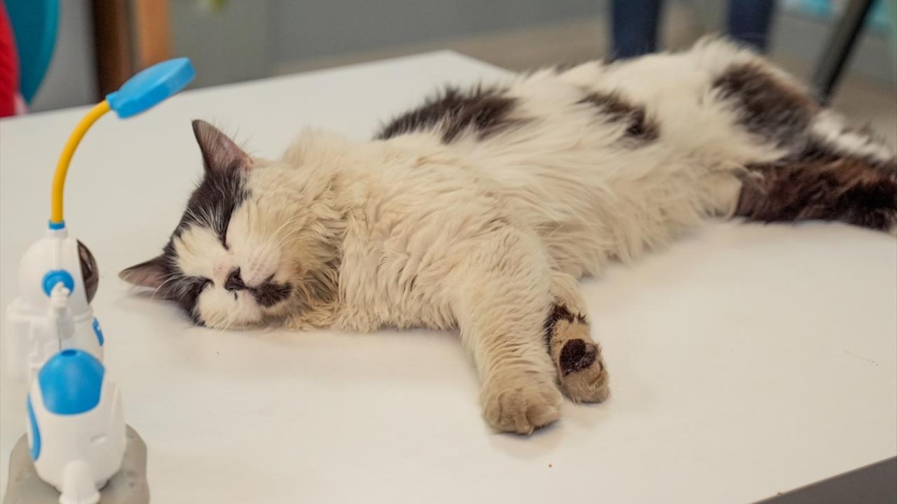 Çocukların merkeze getirdiği ve "Einstein" adını verdiği kedinin tedavisi sağlandı.