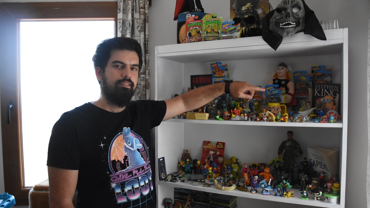 Muğla'nın Bodrum ilçesinde, çocukluğundan bu yana çizgi film karakterlerine merakı olan 36 yaşındaki Orkun Türe'nin, evinde biriktirdiği 300'den fazla kurgusal çizgi film figürü ve büstünden oluşturduğu koleksiyonu dikkati çekiyor.