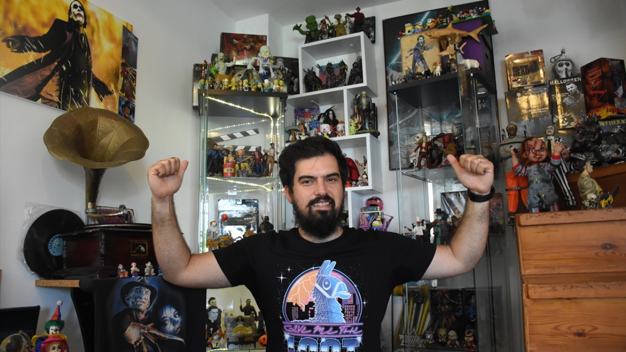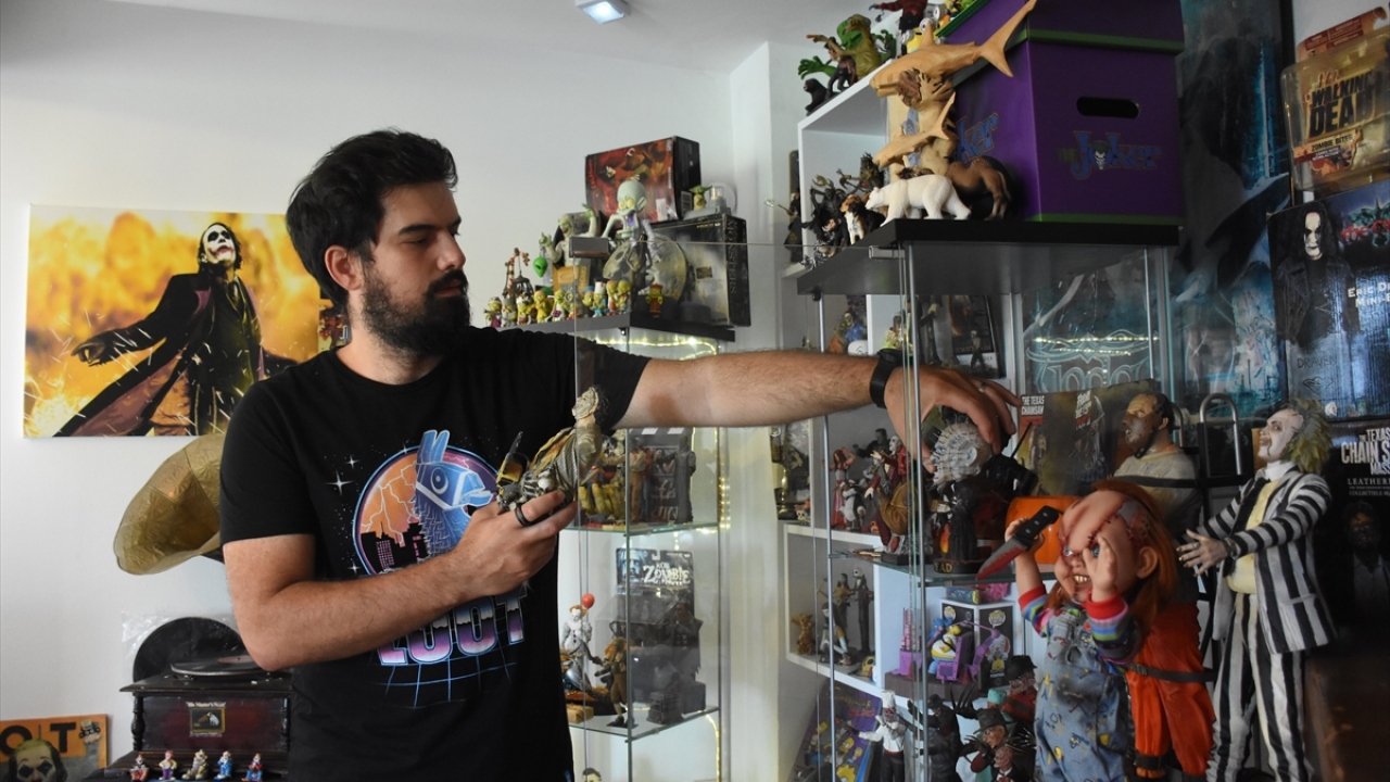 "Benim için güzel bir hobi, iyi bir uğraş oluyor. Bunlarla uğraşmak kafamı dağıtıyor, insanı çok daha farklı yerlere götürüyor. Koleksiyonun yüzde 90`ı korku karakterleri. Klasik film karakterleri ve büstleri bulunuyor. Chucky, Freddy, Leatherface, Pinhead, Beterböcek, Hellboy, Palyaço Pennywise, Batman Joker, Minion, Scooby-Doo ve Ninja Kaplumbağalar gibi yüzlerce orijinal karakter figürleri var. Bu figürleri daha çok sosyal medyadan, kermeslerden ve pazarlardan ediniyorum. Bu figürler son yıllarda çok rağbet görmeye başladı."