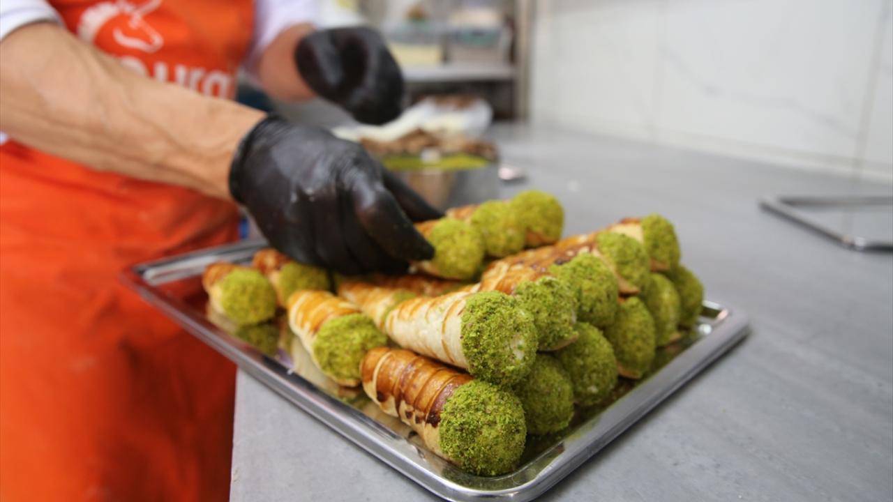 Pişen külahın içini özel hazırlanan süt kremasıyla doldurduklarını ve isteğe göre çikolata ya da Antep fıstığı ile servis ettiklerini aktaran Kuş, tatlıya talebin fazla olduğunu belirtti.