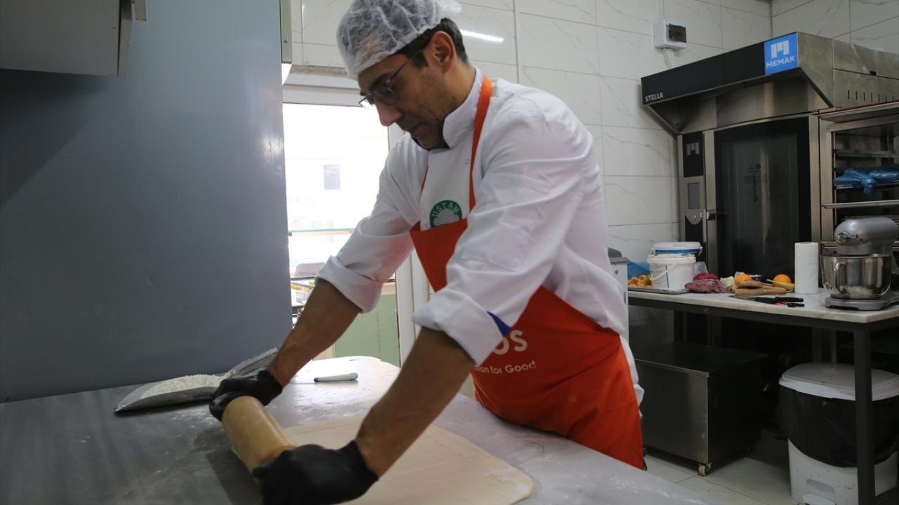 Afette evi de hasar alan Mengüllüoğlu, eşi ve 2 çocuğuyla taşındığı Subaşı Mahallesi`nde prefabrik bir iş yeri kiralayan Mengüllüoğlu, hünkar külahı tatlısı yapımını sürdürüyor.