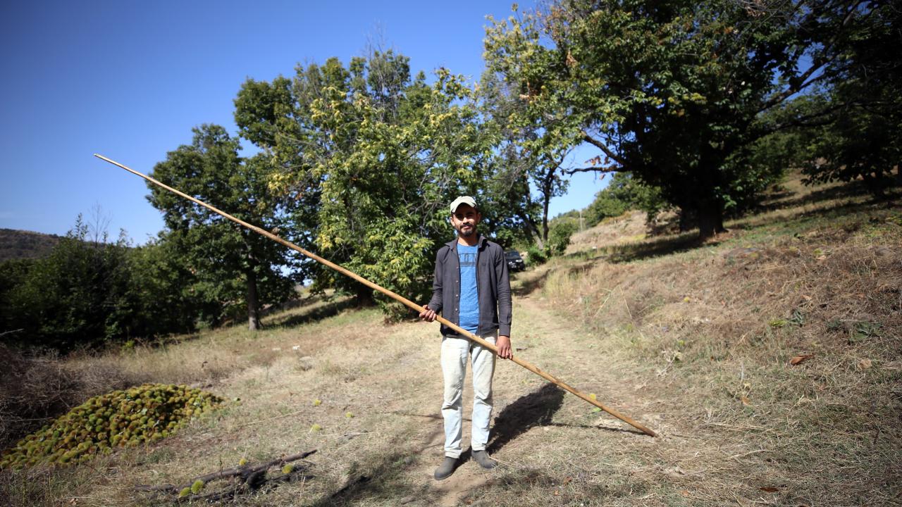 Kestane toplamasının zor ve riskli bir iş olduğunu, ellerinde uzun sırıklarla ağaca çıkan işçilerin düşerek yaralanabildiğini, can kayıplarının da görüldüğünü anlatan Özdemir, ağaçtan düşen dikenli kozalakların da yaralanmalara da neden olduğunu aktardı.