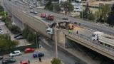 İzmir'de viyadükte asılı kalan tırın sürücüsü yaralandı