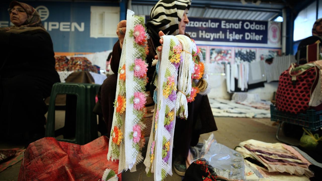 Balıkesir'in Gönen ilçesinde coğrafi işaret tescilli iğne oyası yapan kadınlar, el emeği ürünlerini ilçede 65 yıldır kurulan oya pazarında ya da oluşturdukları kooperatif aracılığıyla satarak kazanca dönüştürüyor.