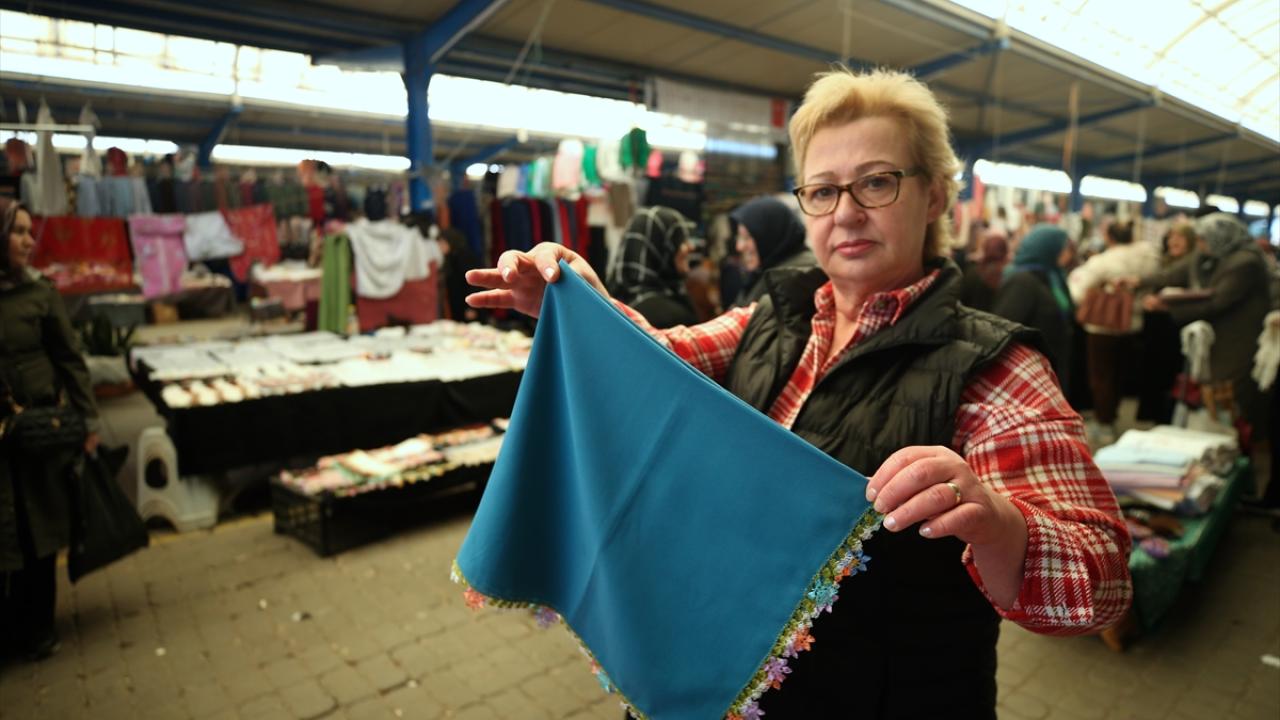 Pazarda iğne oyası satışı yapan Nuriye Gülmez de bu sayede çocuklarına ve torunlarına harçlık gönderdiğini söyledi.