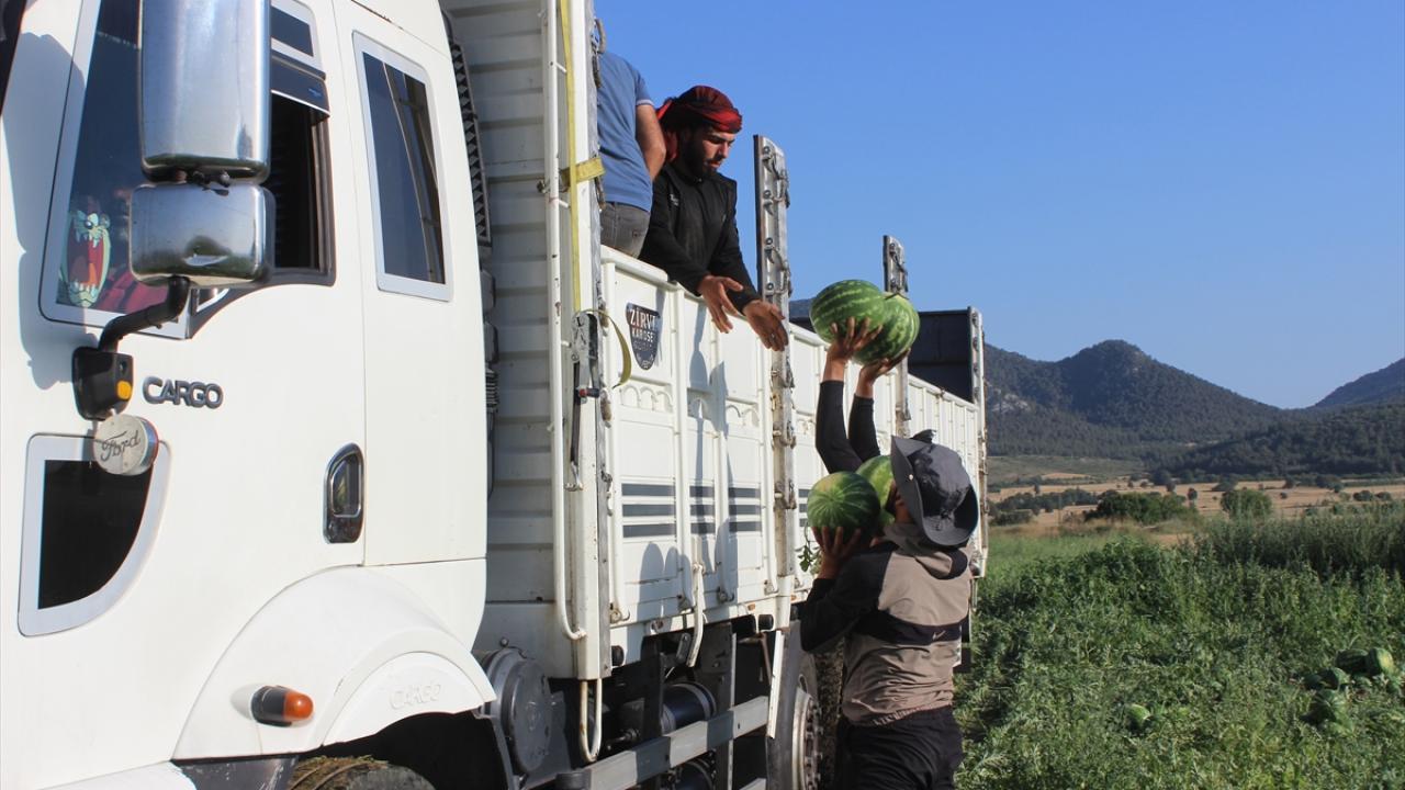 Tüccarlar tarafından alınarak kamyonlara yüklenen karpuzlar, İstanbul başta olmak üzere birçok kente götürülerek manav, market ve pazarlarda tüketiciye buluşturuluyor.