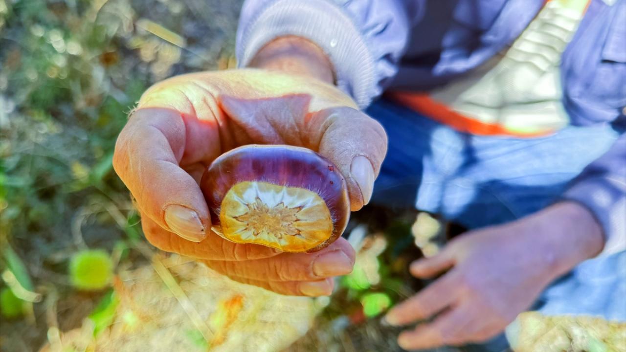 "Kestanelerimiz olgunlaşmış. Bundan dolayı ormana kestaneleri silkelemeye ve toplamaya geldik. Sırıklarla ağaçları silkeledikten sonra çuvallara dolduruyoruz. Daha sonra bu kestaneleri daha lezzetli olmaları için birkaç ay bekletiyoruz. Yağış olmadığından dolayı önceki yıllara göre bu yıl hasat düşük. Bu sezon kestanenin kilogramı yaklaşık 150-200 lira arasında satılır diye tahmin ediyorum. Bu bölgede yetişen kestanelerin kokusu, aroması ve lezzeti çok güzel."