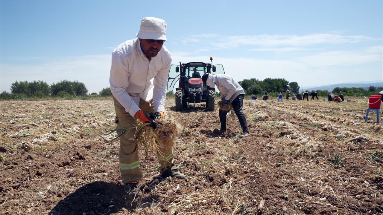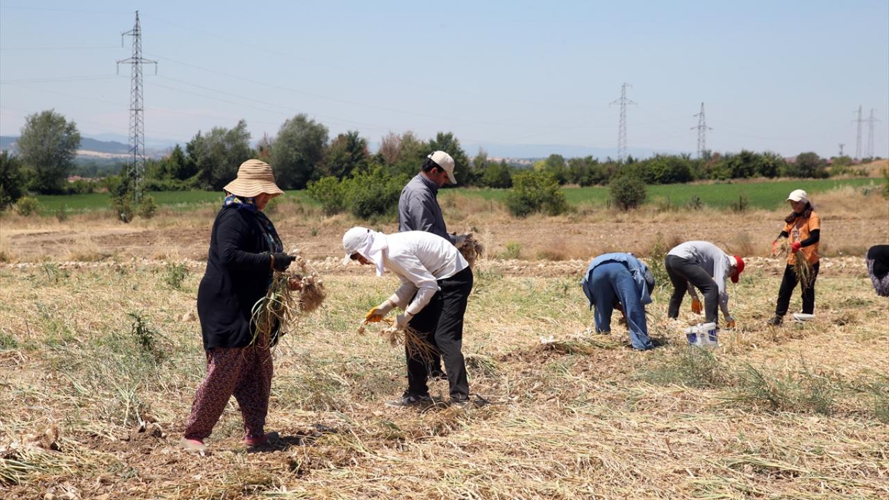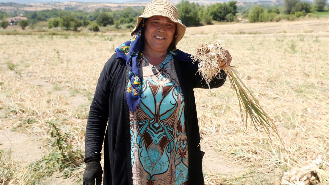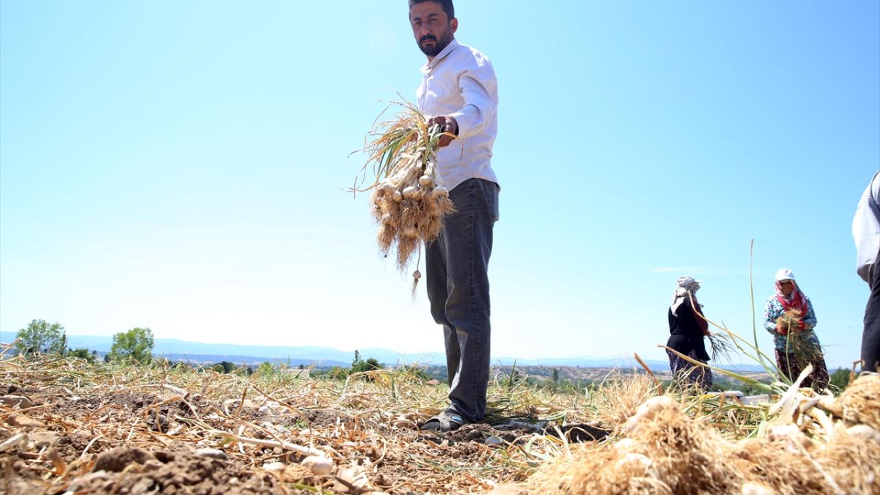 Coğrafi işaretli Taşköprü sarımsağının hasadı kavurucu sıcakta yapılıyor