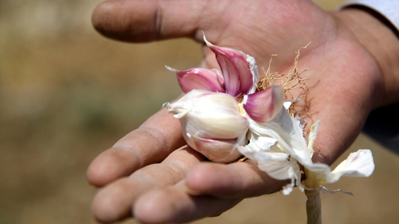 Sarımsağın tohumunun şubat ve martta toprakla buluşturulduğunu dile getiren Uysal, "Temmuzun 15`inin gelmesiyle gün yüzüne çıktı, hasadımızı yapıyoruz." dedi.