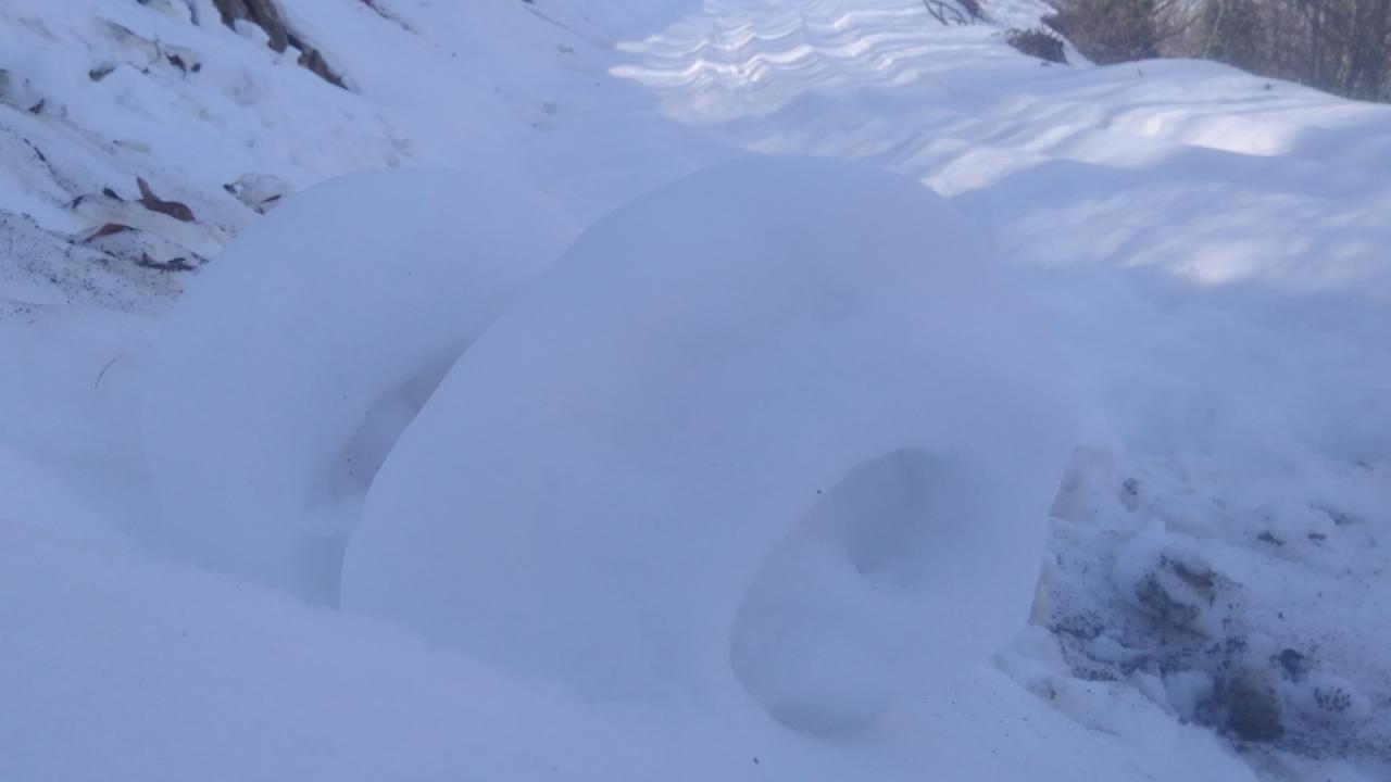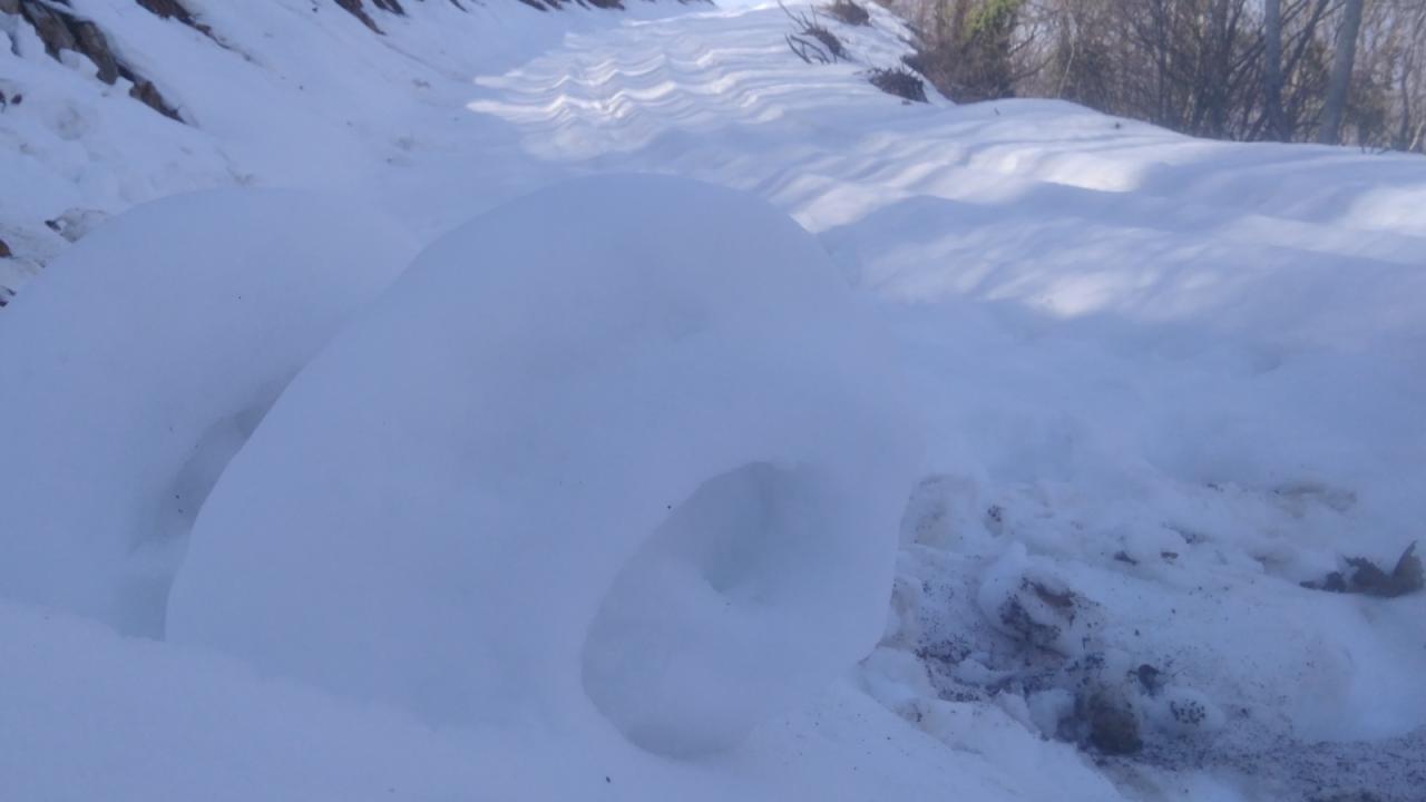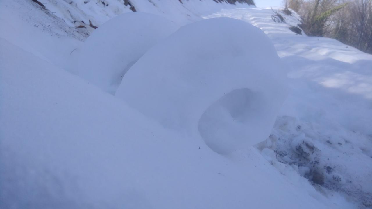 Amasya’nın Taşova ilçesine bağlı bin 500 rakımlı dereli ormanında kar ruloları tekrar göründü.