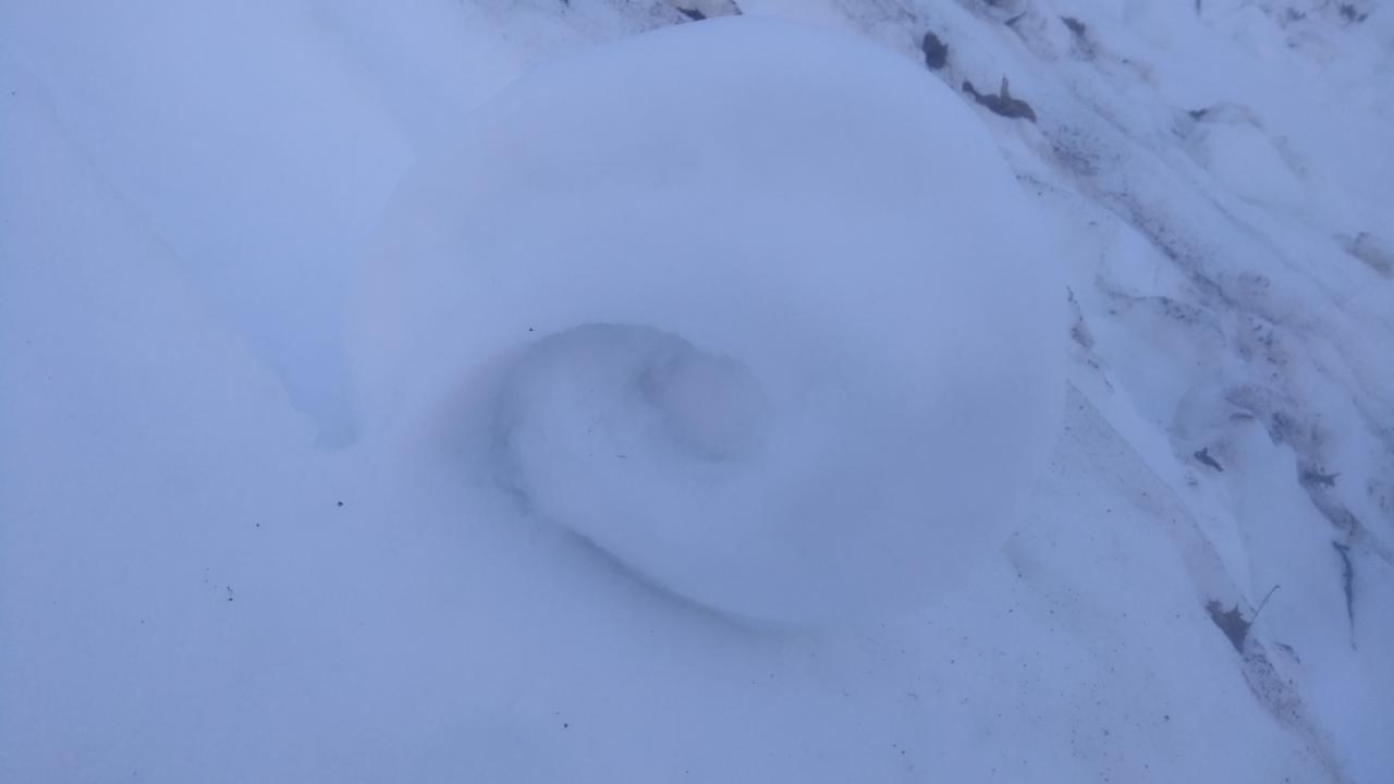 Rüzgâr zemindeki karı yüzeyden koparıp yuvarlamaya başlıyor ve rüzgârın etkisiyle rulo giderek büyüyor.