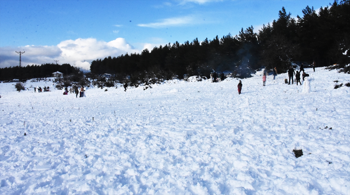Kent merkezinde yaşayanlar bölgeye giderek, mangal yaptı, kartopu oynadı.