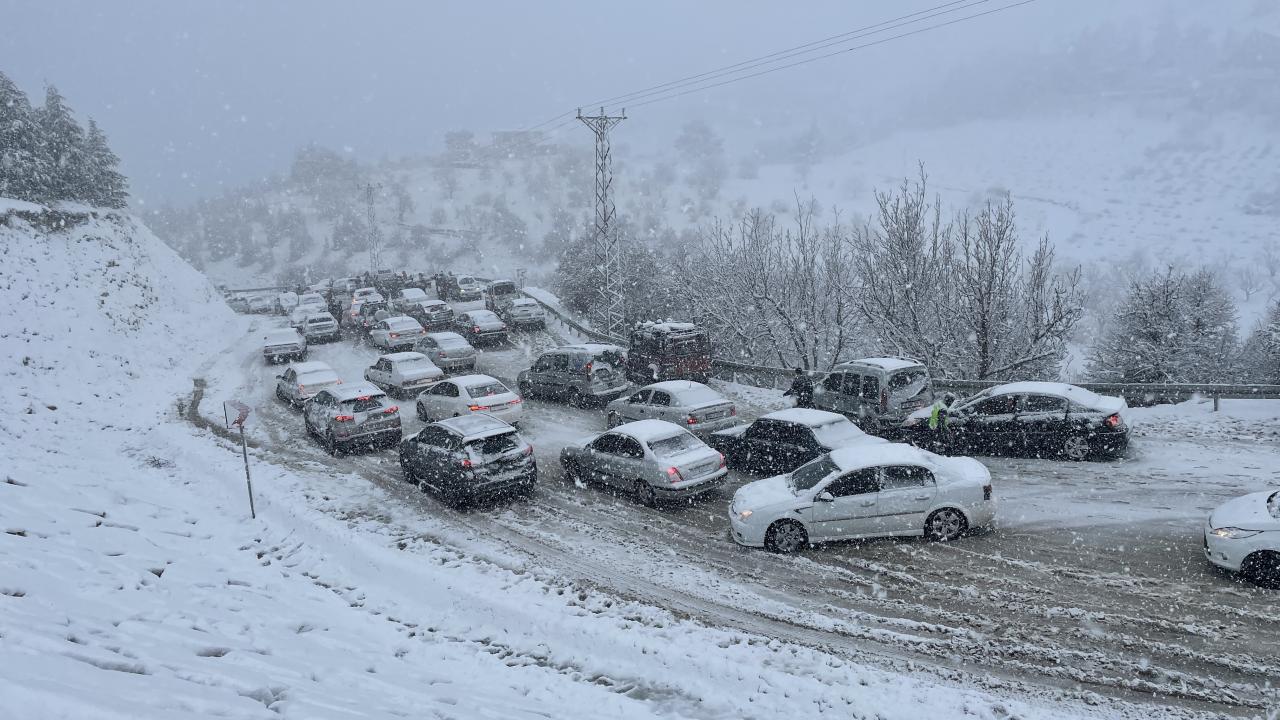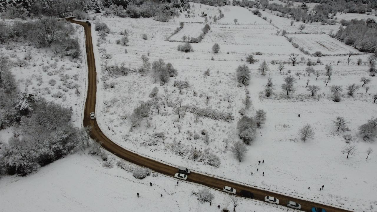 Öte yandan karın etkili olduğu bölgede jandarma ekipleri, sürücüleri zincir takmaları, aşırı hız ve yakın takip yapmamaları konusunda uyararak, kent merkezine geri dönmelerini istedi.