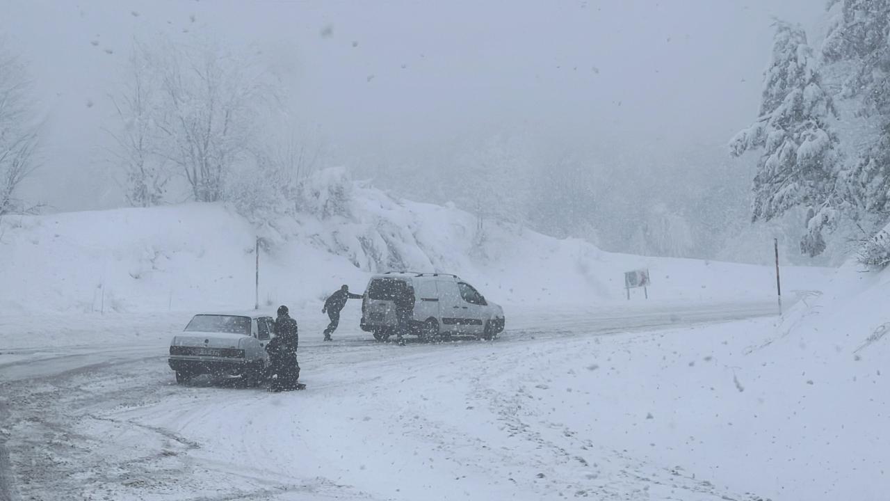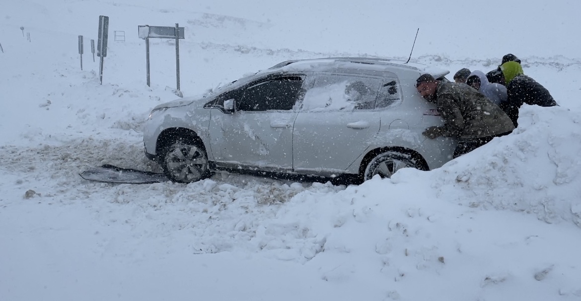 Tipi ve buzlanma nedeniyle kapanan kayak merkezi yolu ve Bertiz yolunda yaklaşık 2 kilometre araç kuyruğu oluştu.